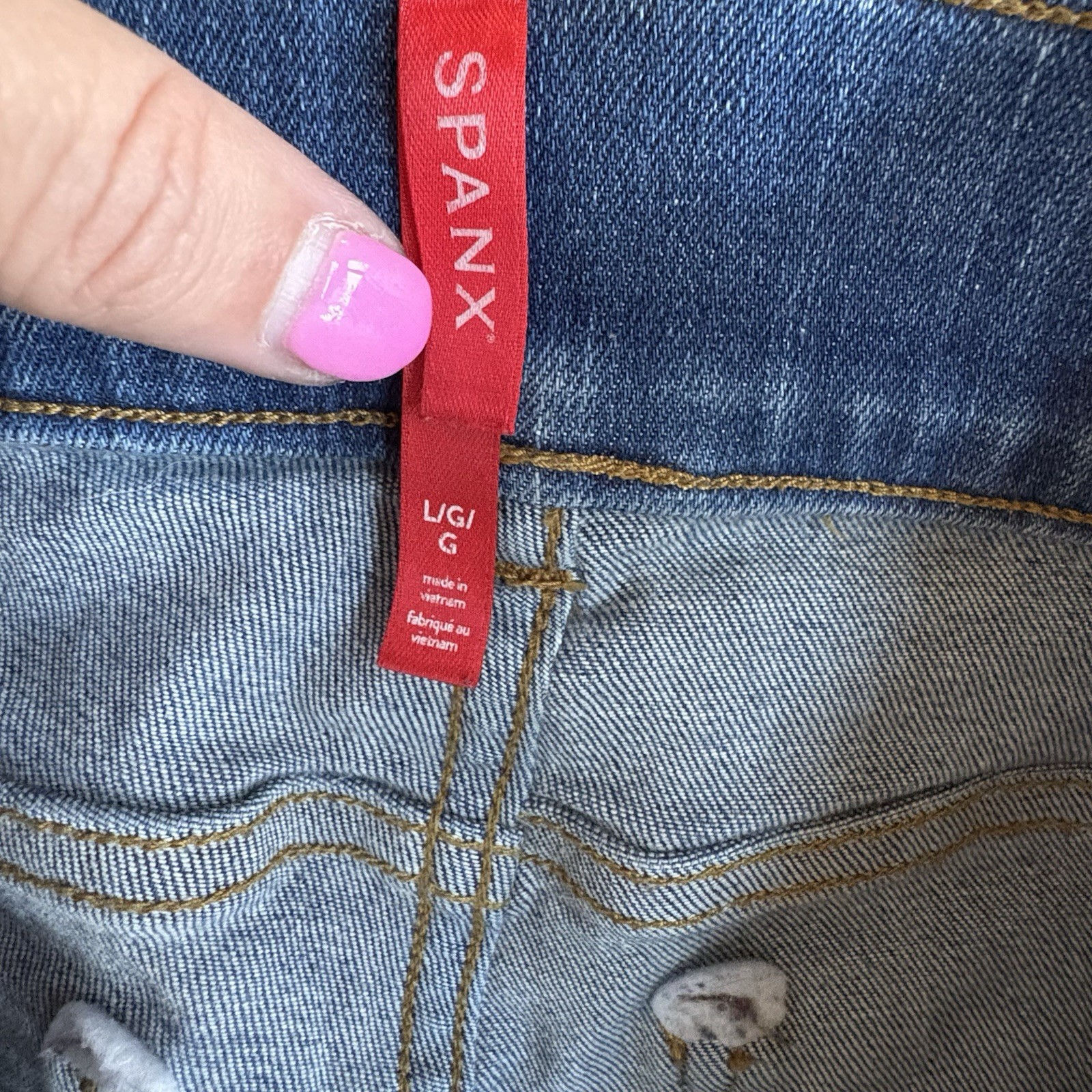 как выглядит SPANX Flare Jeans Women s Large Long Inseam Medium Blue Pull-On Stretch Denim фото