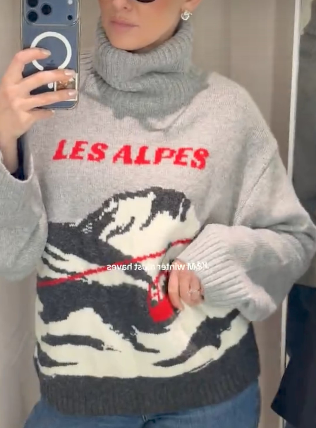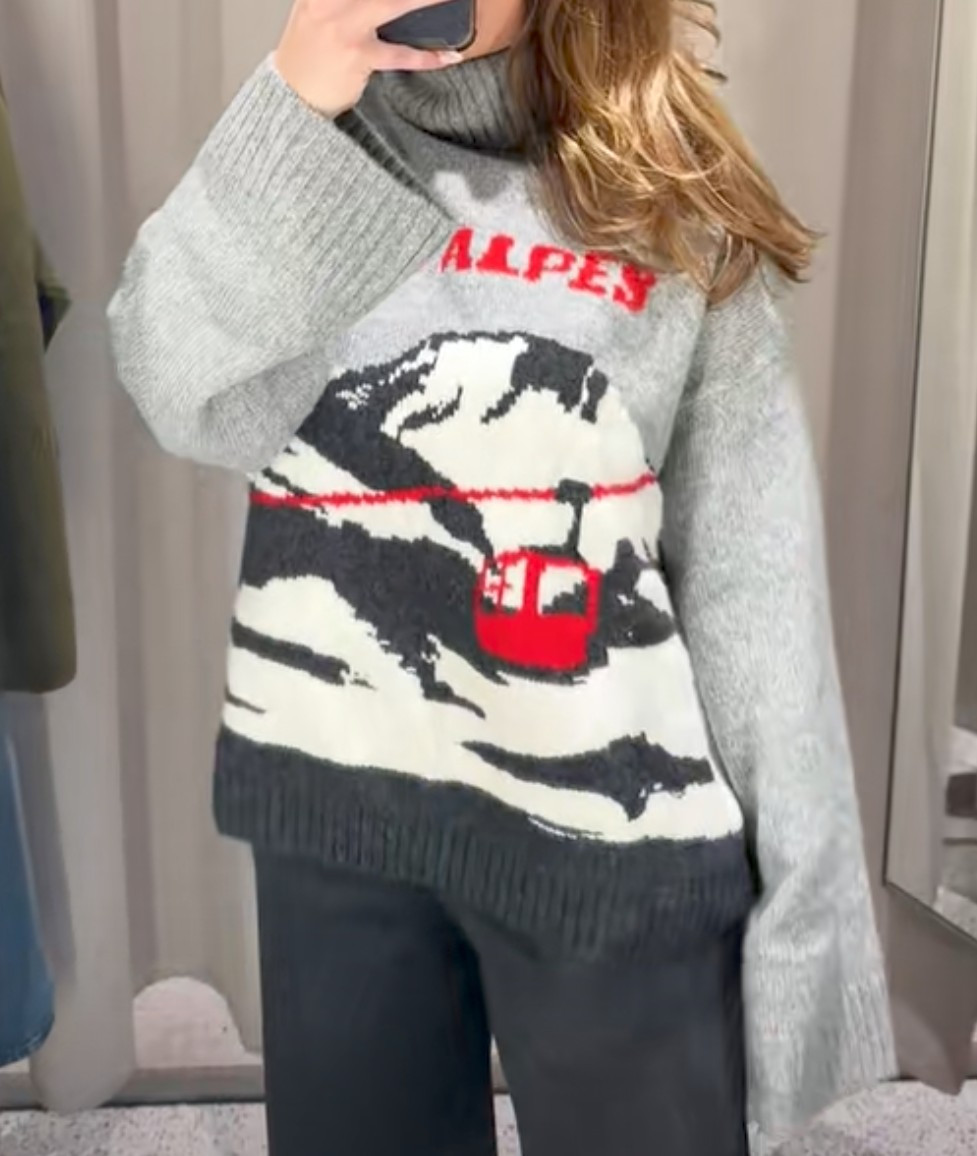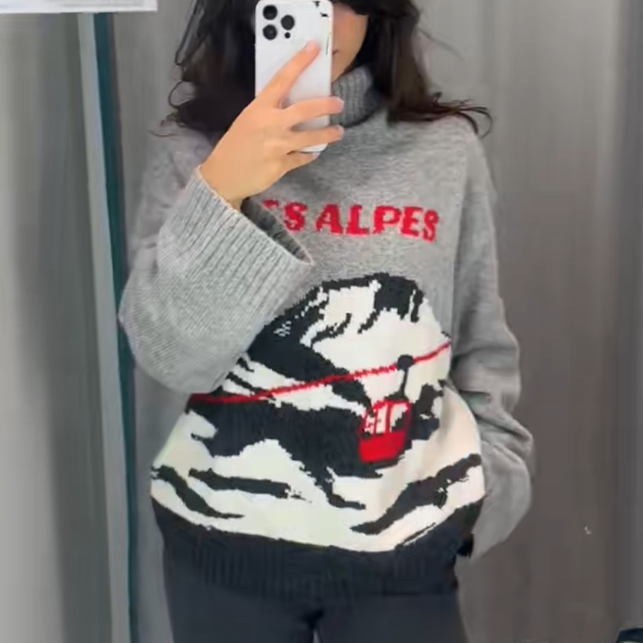 NWT H M Jacquard-knit Turtleneck Sweater Gray Melange/Les Alpes 1312460001 S M L