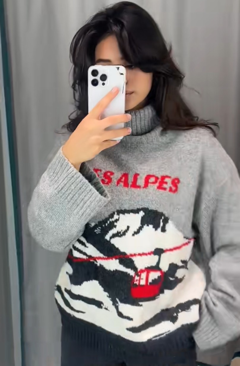 как выглядит NWT H M Jacquard-knit Turtleneck Sweater Gray Melange/Les Alpes 1312460001 S M L фото