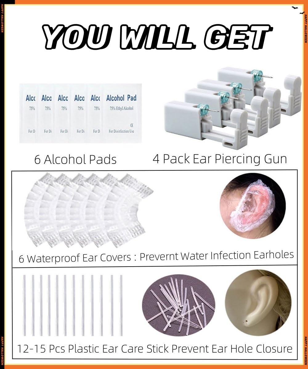 как выглядит 24 Pcs Self Ear Piercing Gun Kits - 24pcs/Set Painless Gold 3mm 204 фото