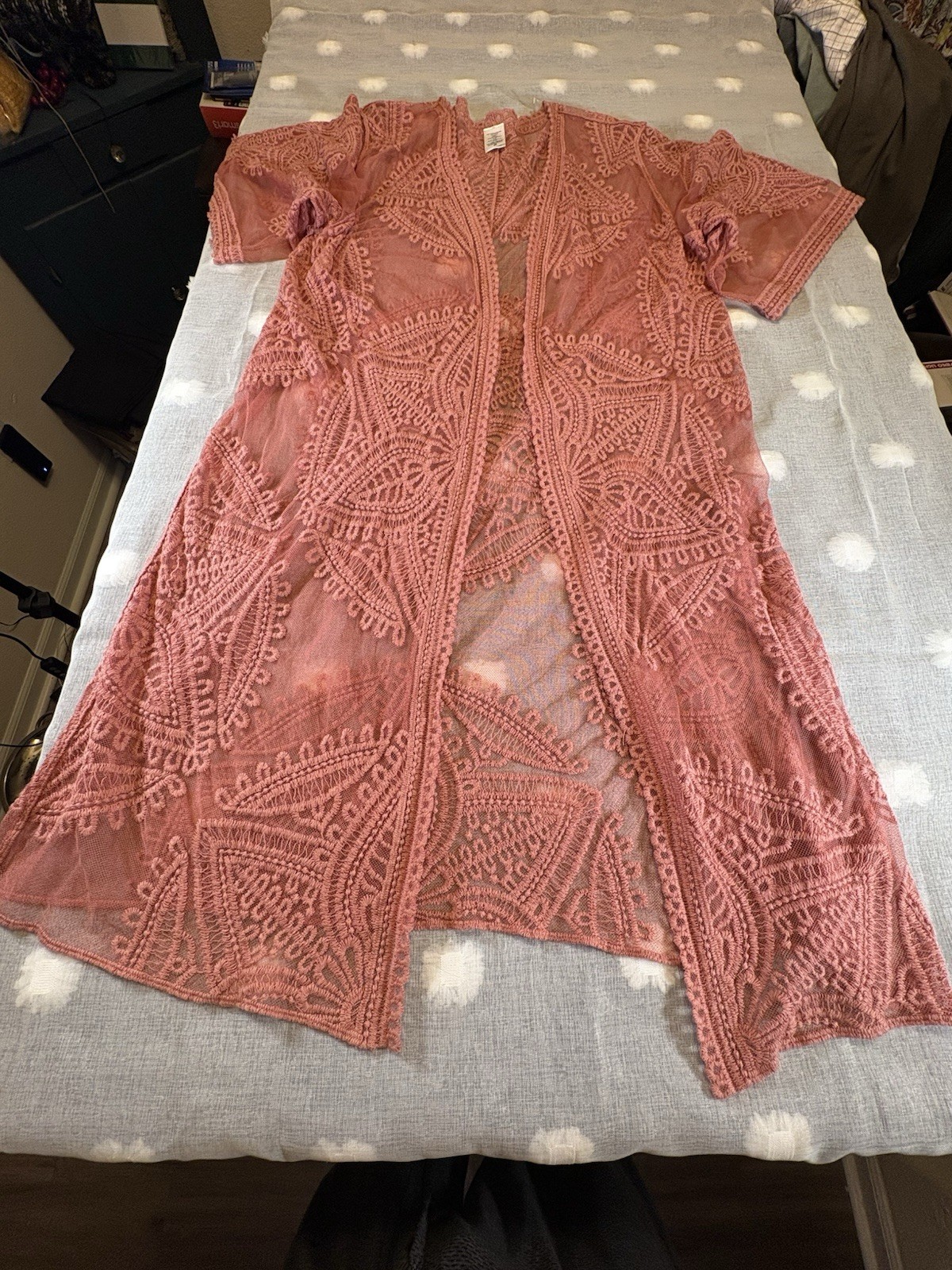 как выглядит Embroidery Sheer Kimono Cardigan Size S-M фото