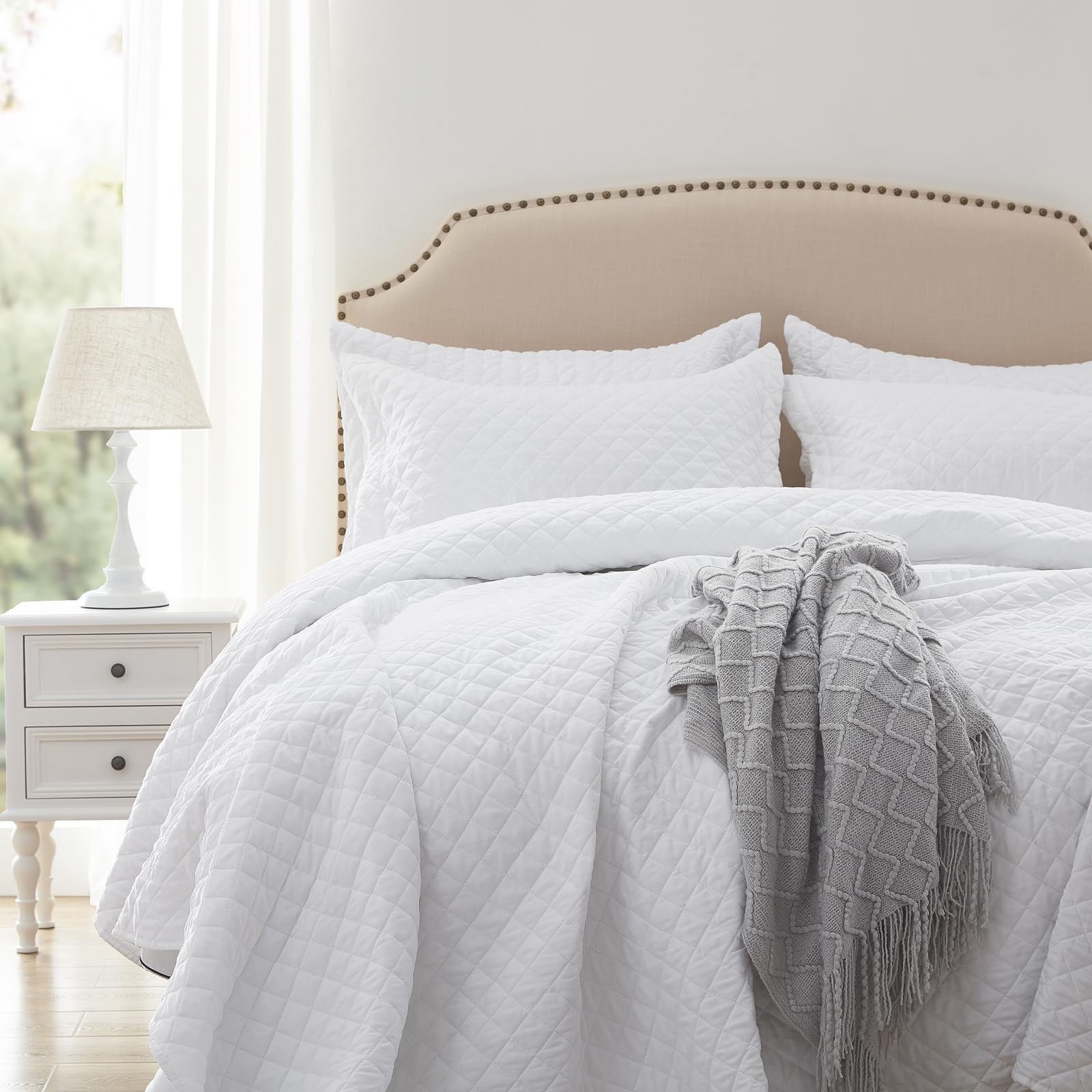 SunStyle Home White King Quilt Bedding Set Lightweight Reversible Coverlet 3 Pcs