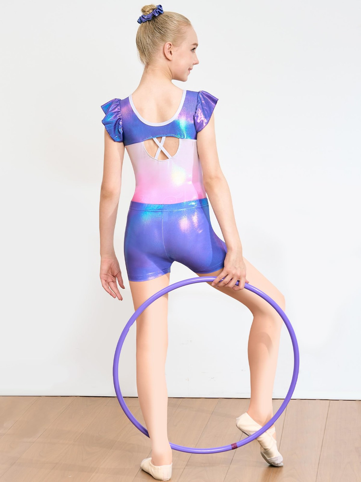 как выглядит Gymnastics Leotards for Girls, Toddler Ruffle Short Sleeve Dance Ballet Outfi... фото