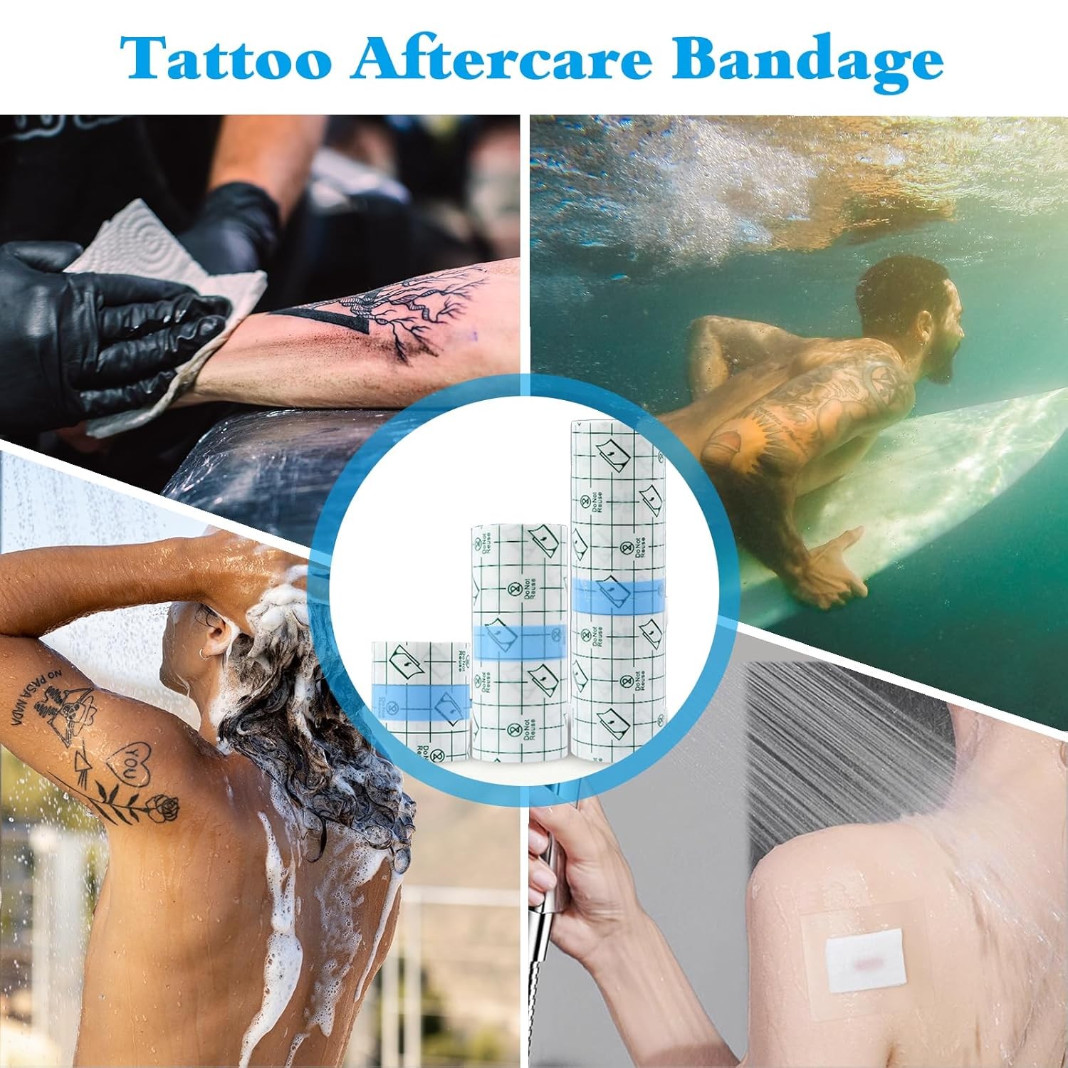 Tattoo Aftercare Bandage Waterproof, 6 Rolls 3 Sizes 2/4/6 x 2.2yd Second...