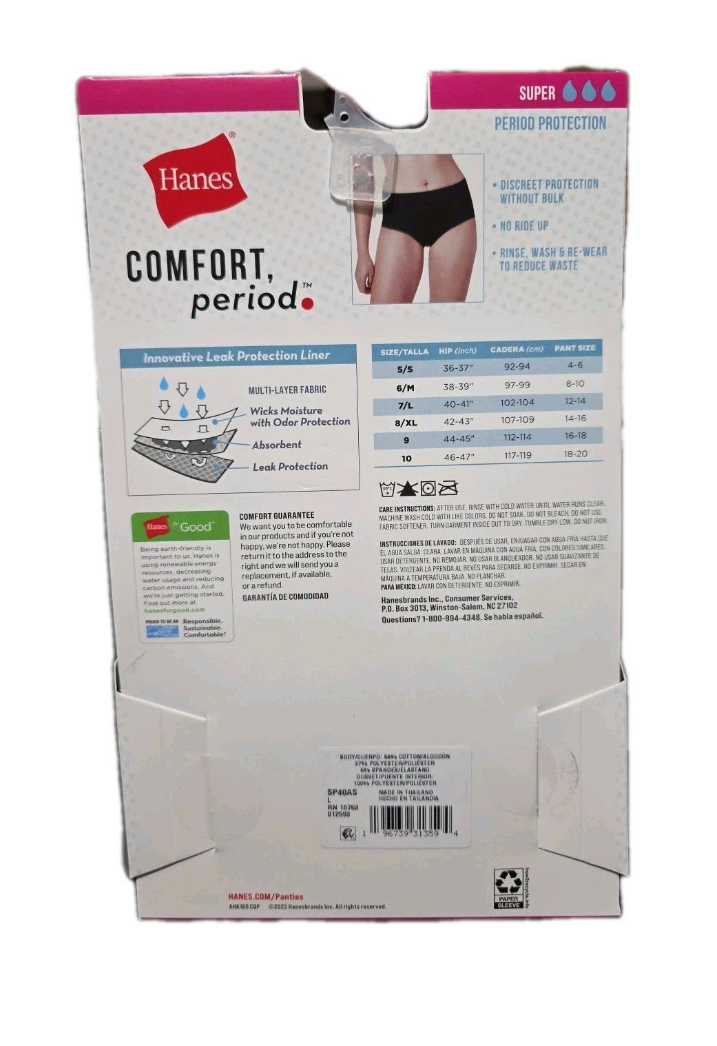 Hanes Comfort Period Cotton Stretch Briefs Super Protection 3 Pack Womens 7 L
