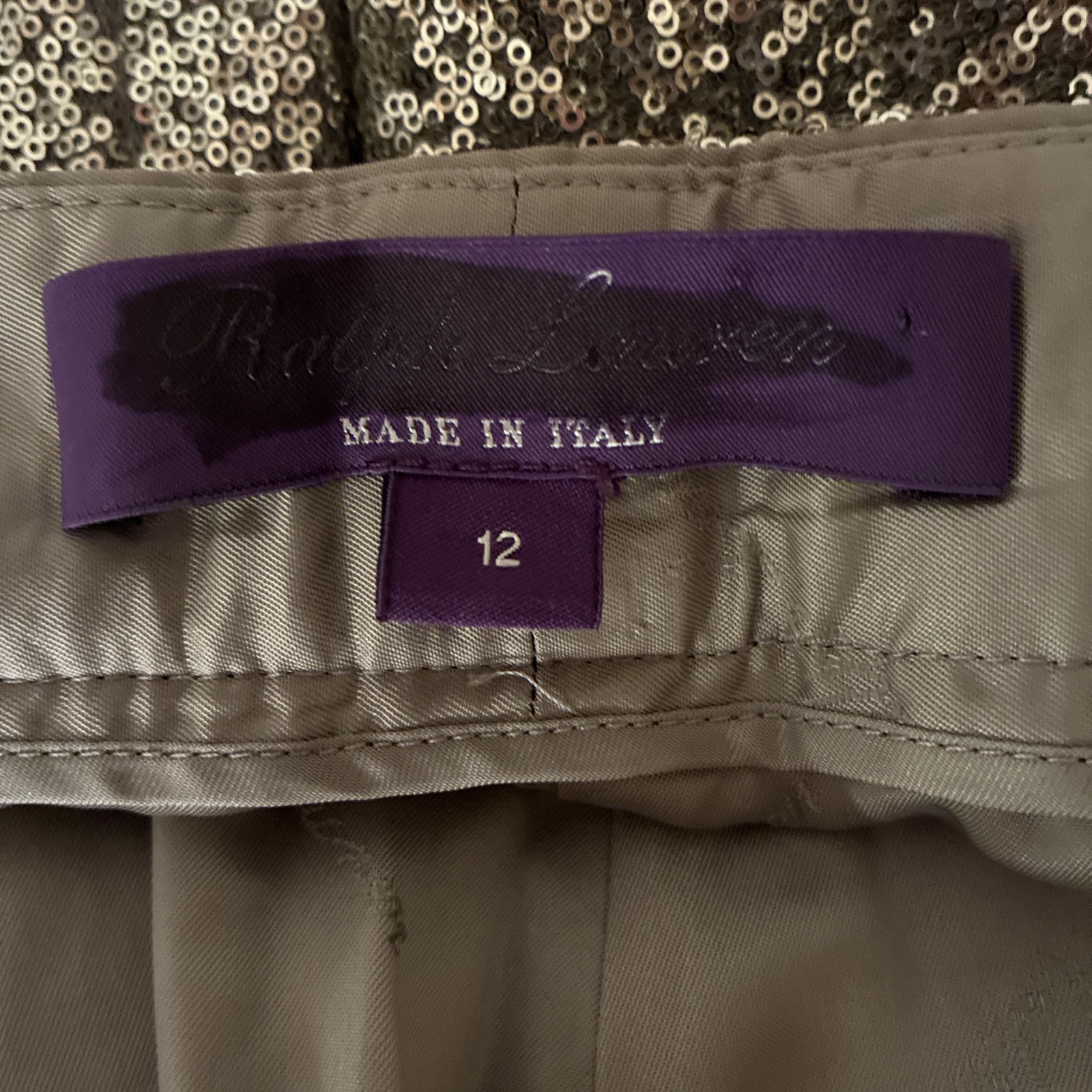 RALPH LAUREN COLLECTION PURPLE LABEL Welles SILVER SEQUIN Wide Leg Pants Size 12