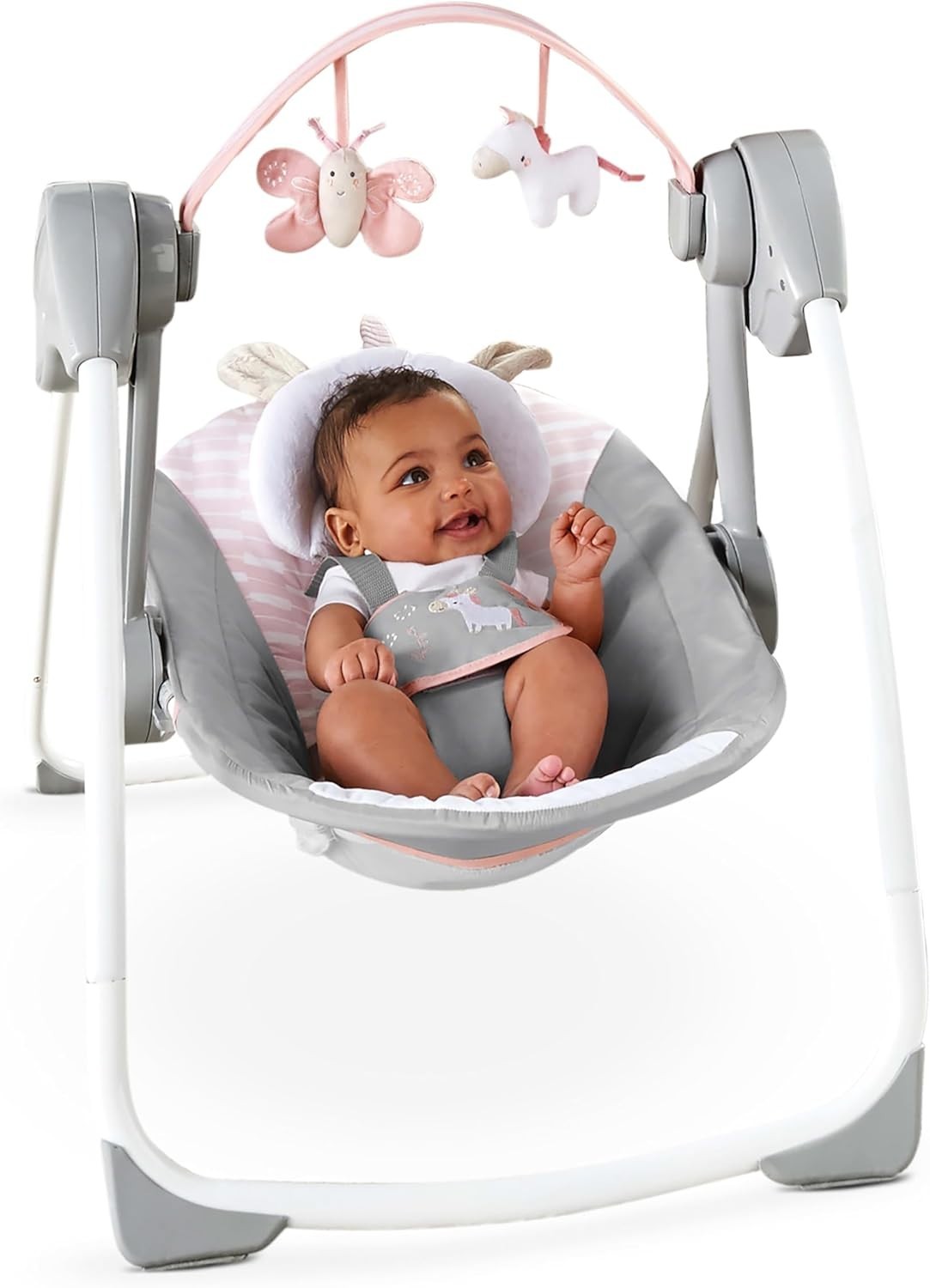 Ingenuity Comfort 2 Go Portable Baby Swing Compact Flora Unicorn Pink