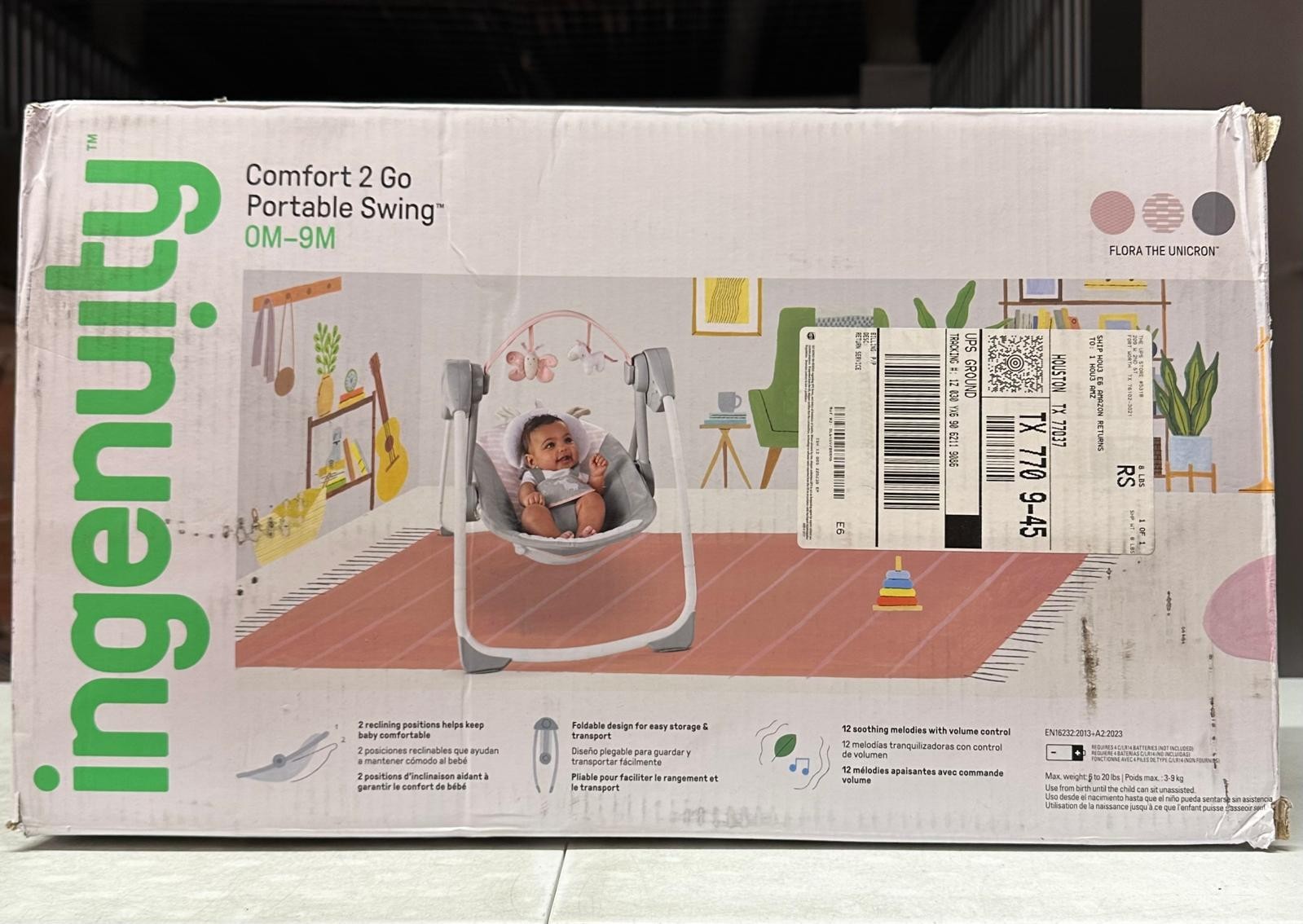 как выглядит Ingenuity Comfort 2 Go Portable Baby Swing Compact Flora Unicorn Pink фото