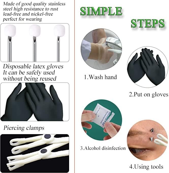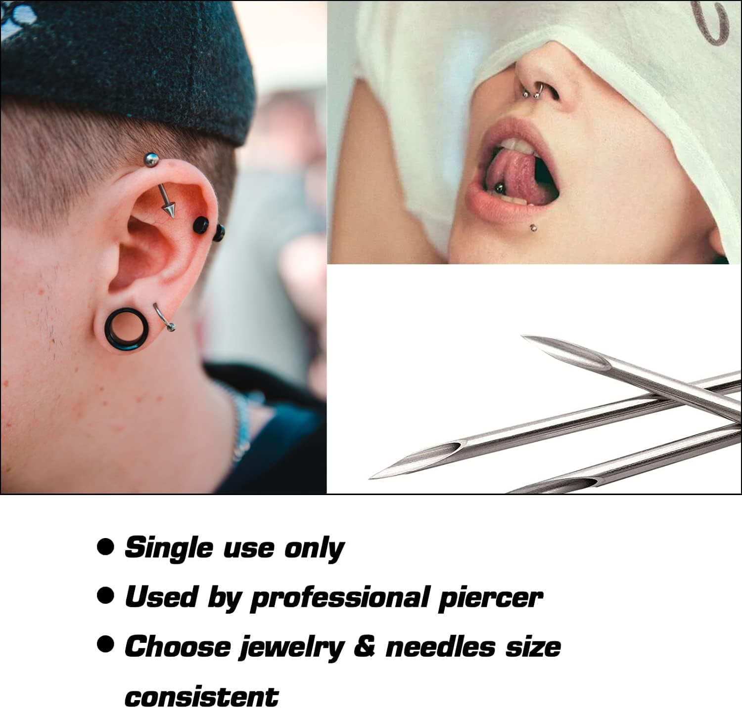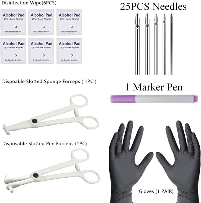 NA Ear Nose Piercing Needles Body Kit Mix Size 12G 14G 16G...