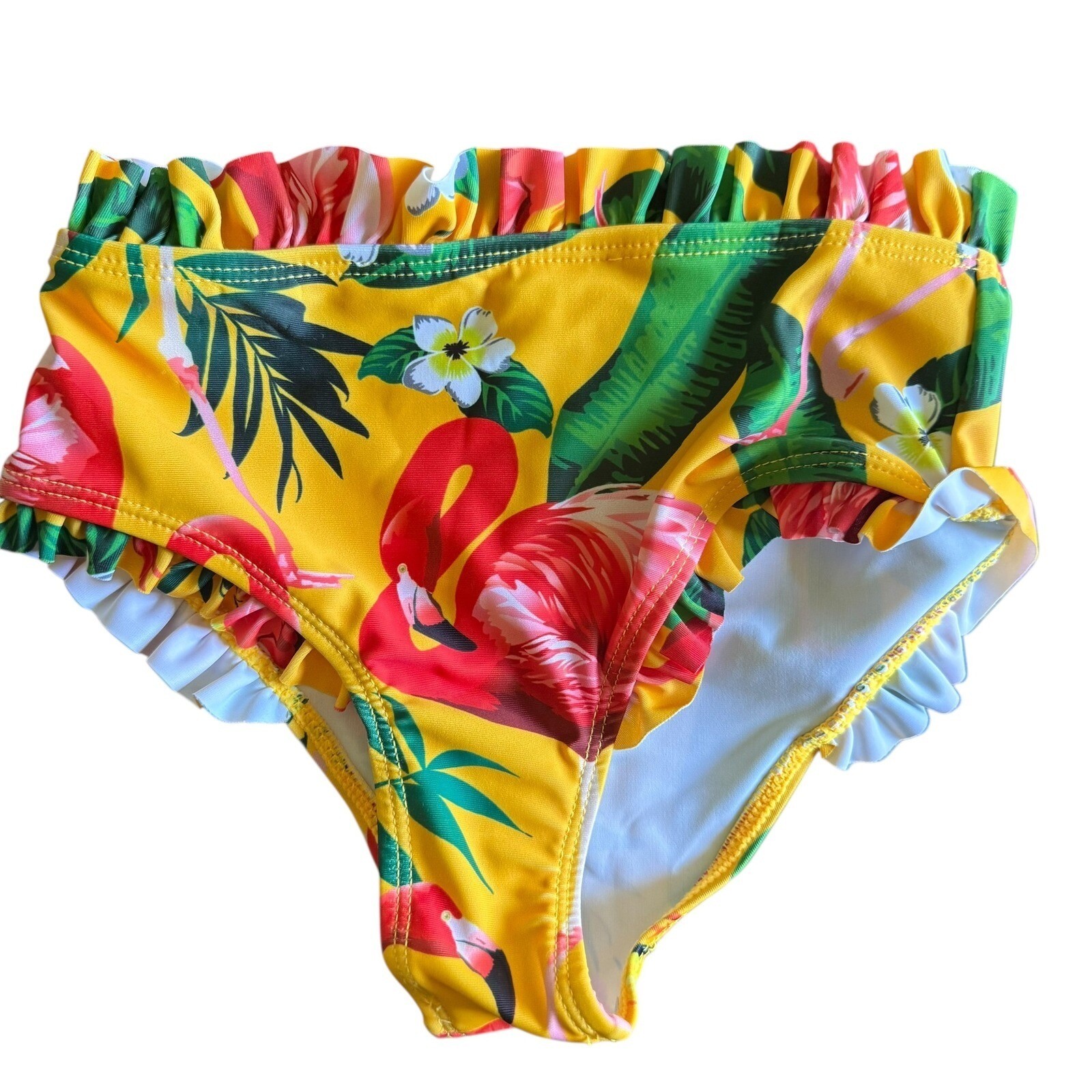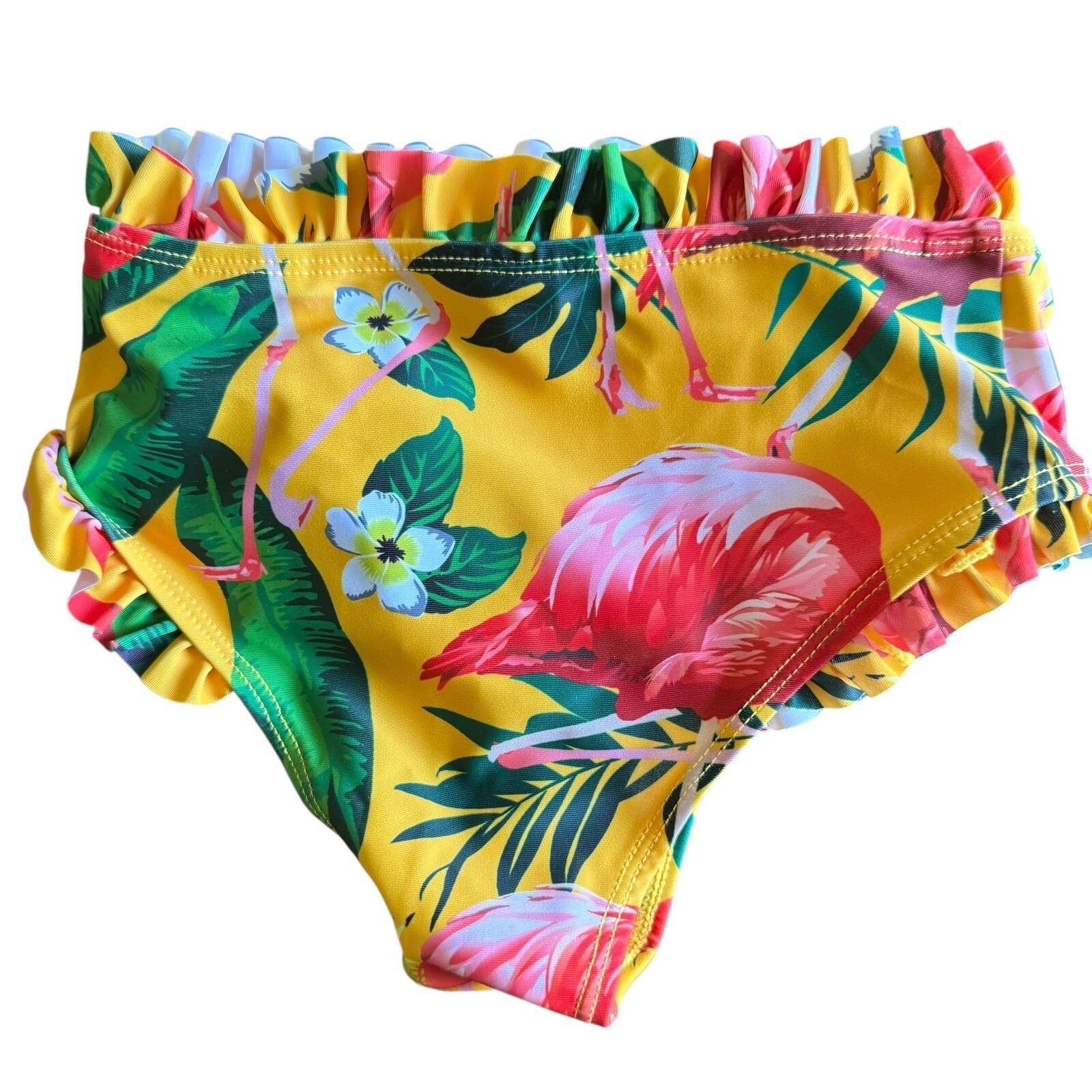 Girls Flamingo Swimsuit Ruffle Two Piece Bathing Suit Yellow 4-5Y Beach Tropical