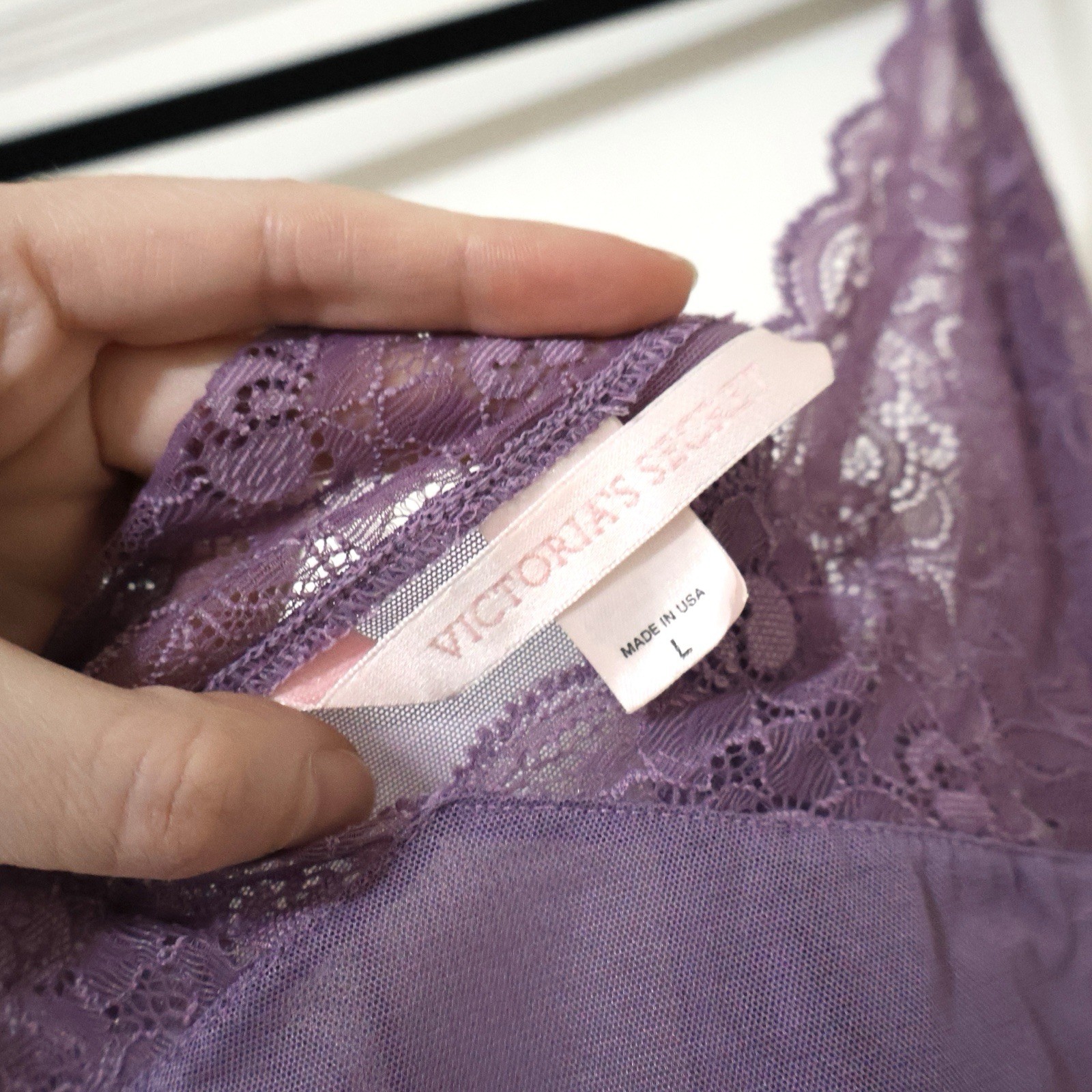 как выглядит Vintage Victorias Secret Sheer Lavender Floral Lace Shimmer Slip Nightie L y2k фото