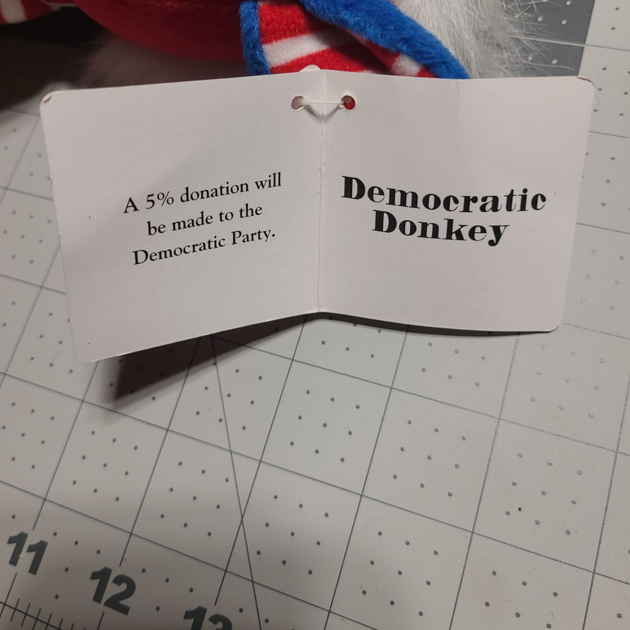 как выглядит NWT DAKIN Plush Toy Red White Blue Striped Bow Tie Patriotic Donkey фото
