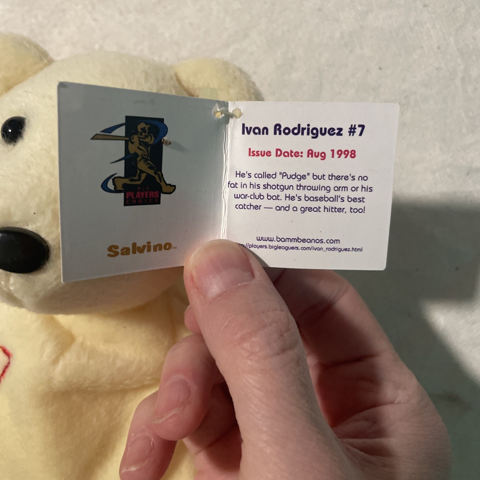 NEW IVAN PUDGE RODRIGUEZ 7 AUGUST 1998 SALVINO'S BAMM BEANO'S BASEBALL BEAR