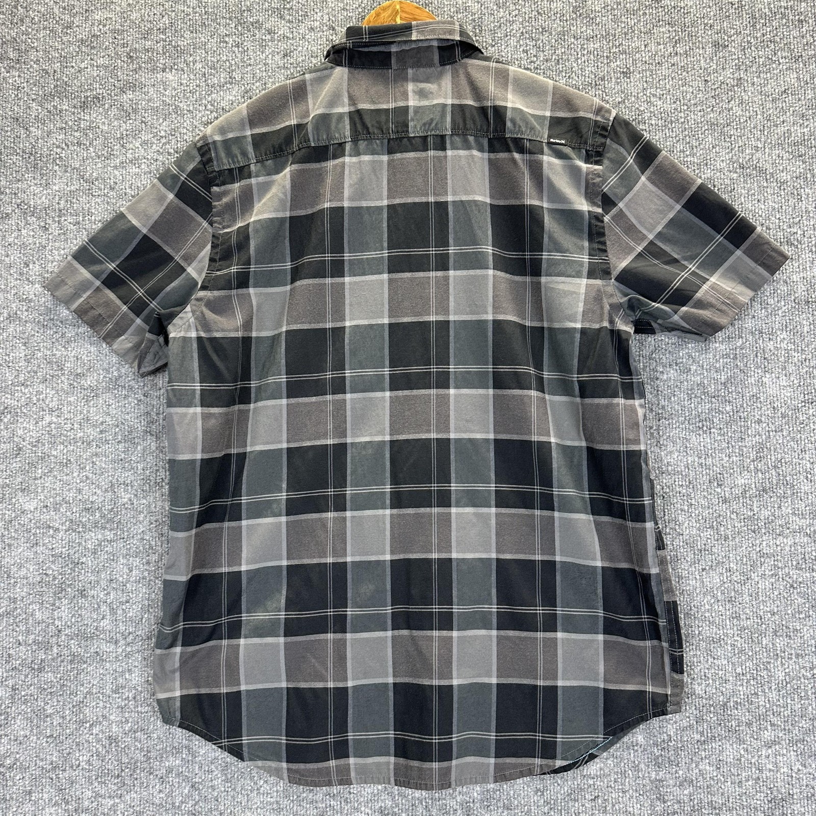 как выглядит Hurley Shirt Mens Large Gray Plaid Short Sleeve Button Up Casual Cotton Surf фото