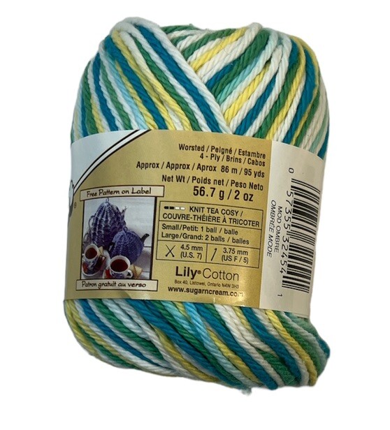 Sugar n Cream Yarn 2oz Cotton 4Ply Worsted Variegated Green Yellow White Bl