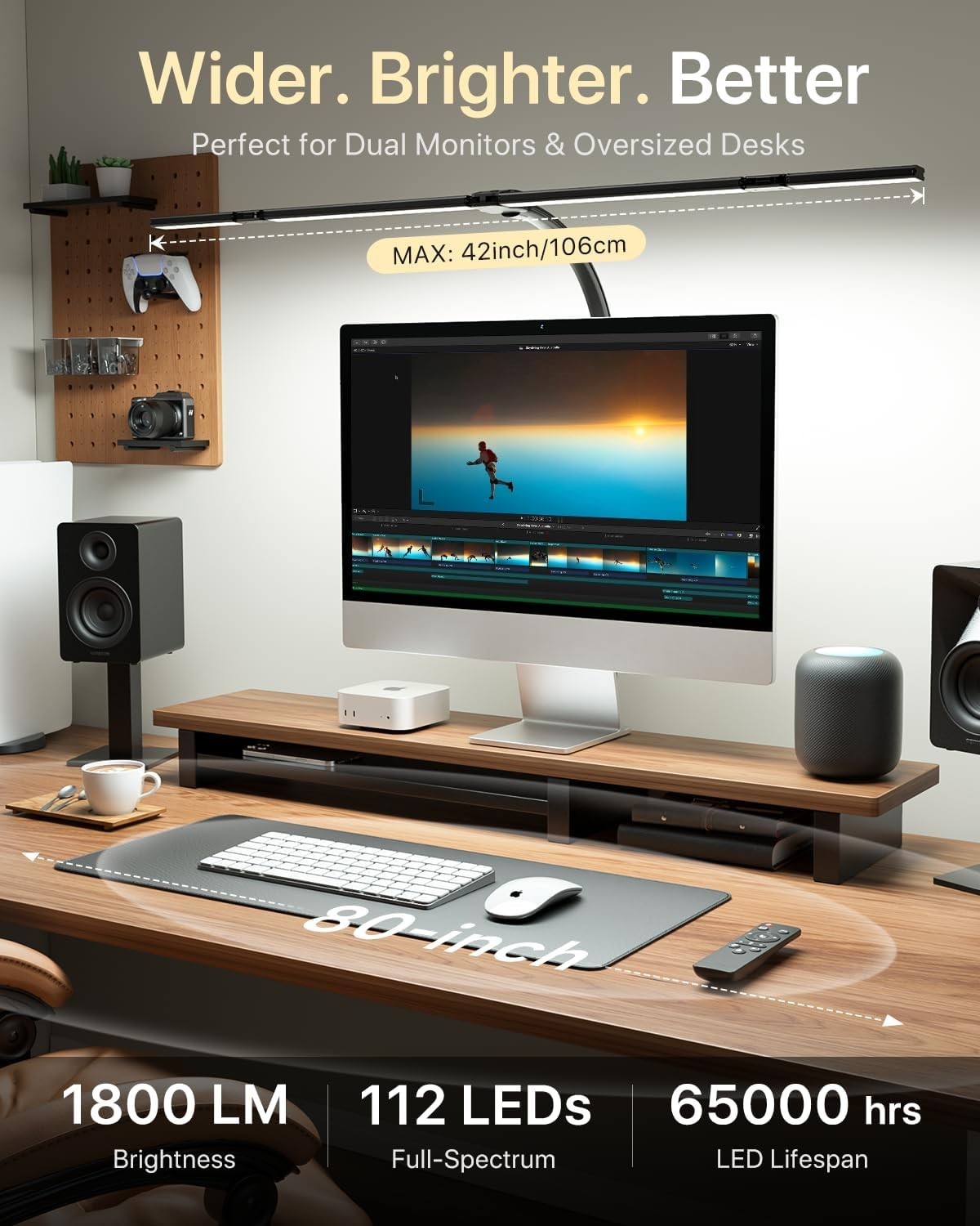 42 LED Desk Lamp with Clamp,Remote, Adjustable 4-Segment Bar 1800LM Bright