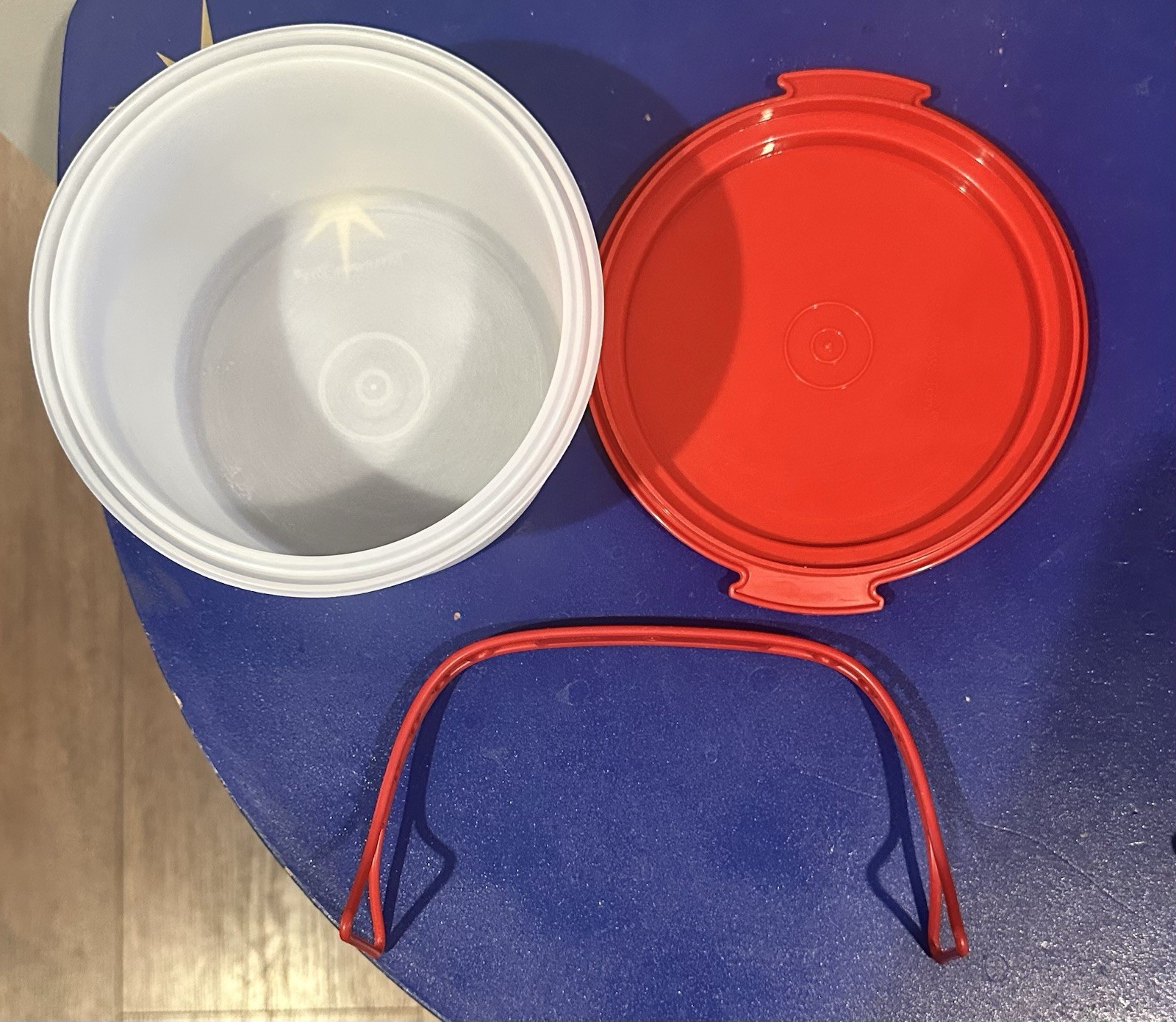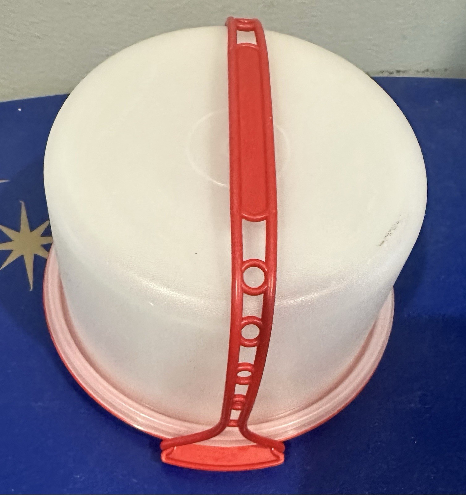 как выглядит Vintage Tupperware Toys Mini Cake Taker Saver Keeper w/ Handle Red 1499-7 фото