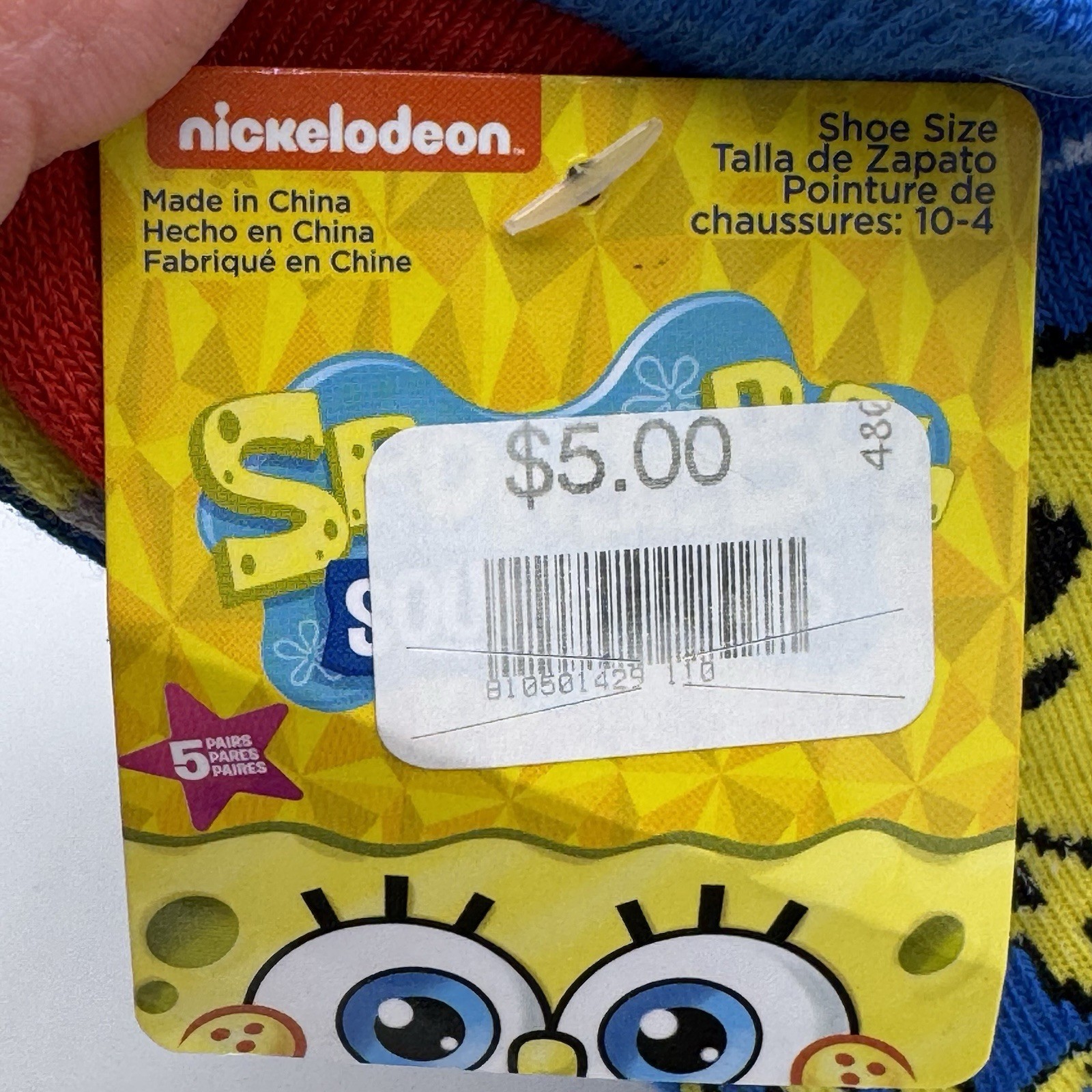 Spongebob - No Show Ankle Socks - Kids Shoe Size 10-4 Nickelodeon 5 Pairs