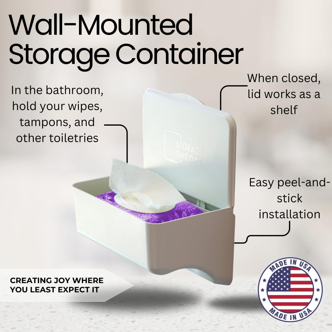 Storage Theory Wipes Holder Dispenser w/ Shelf - Wall Mount Bathroom Organizer W