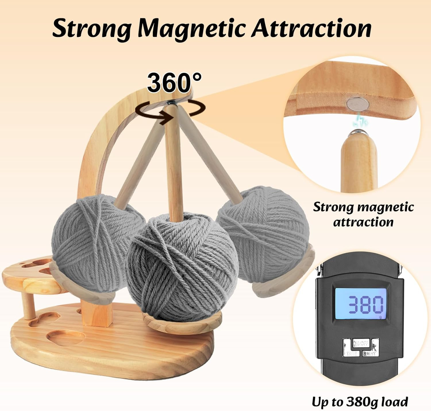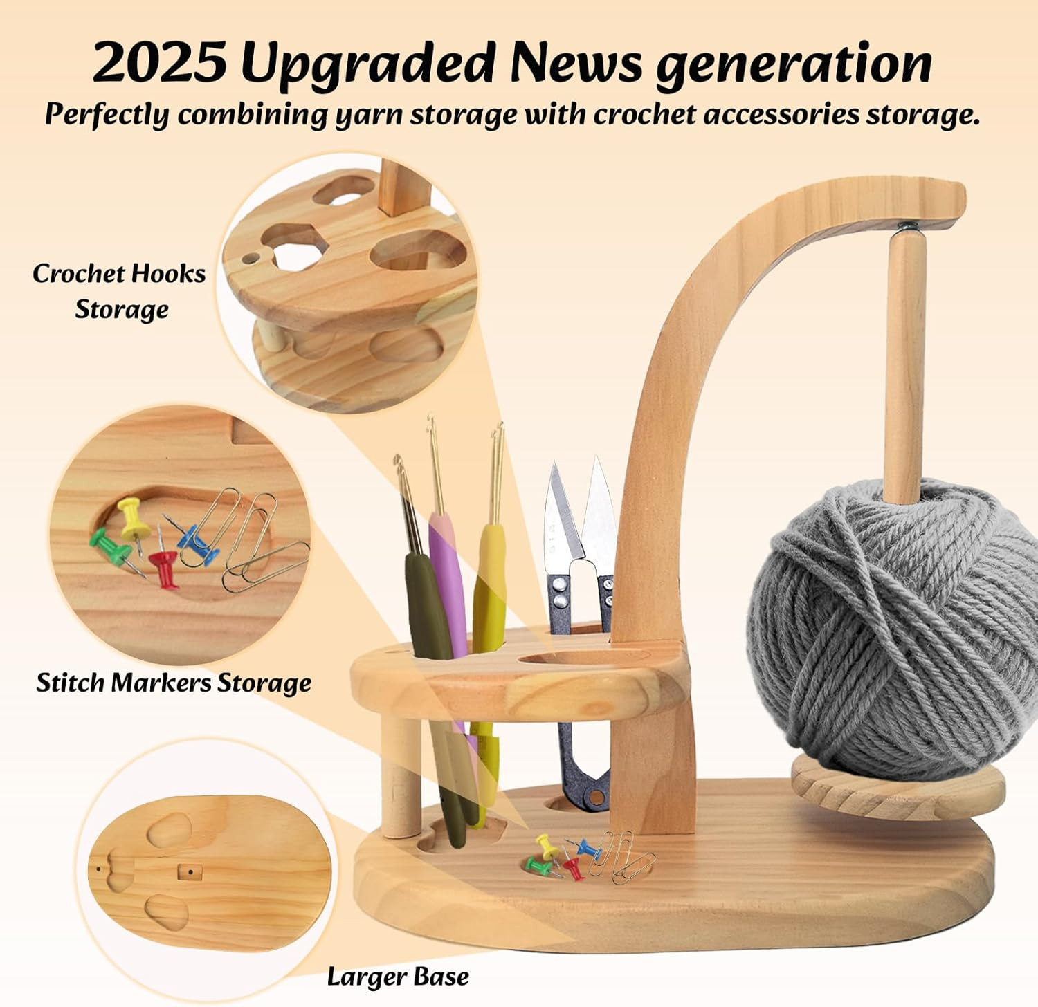 Premium Wooden Yarn Holder with Magnetic Spinner for Crocheting and Knitting