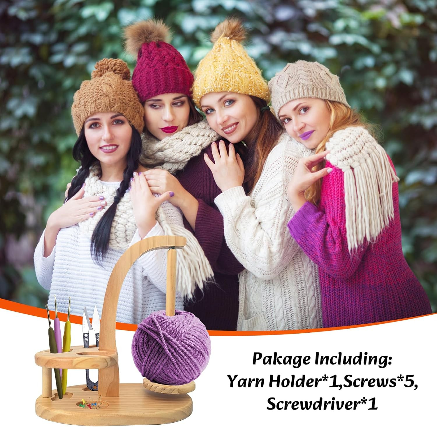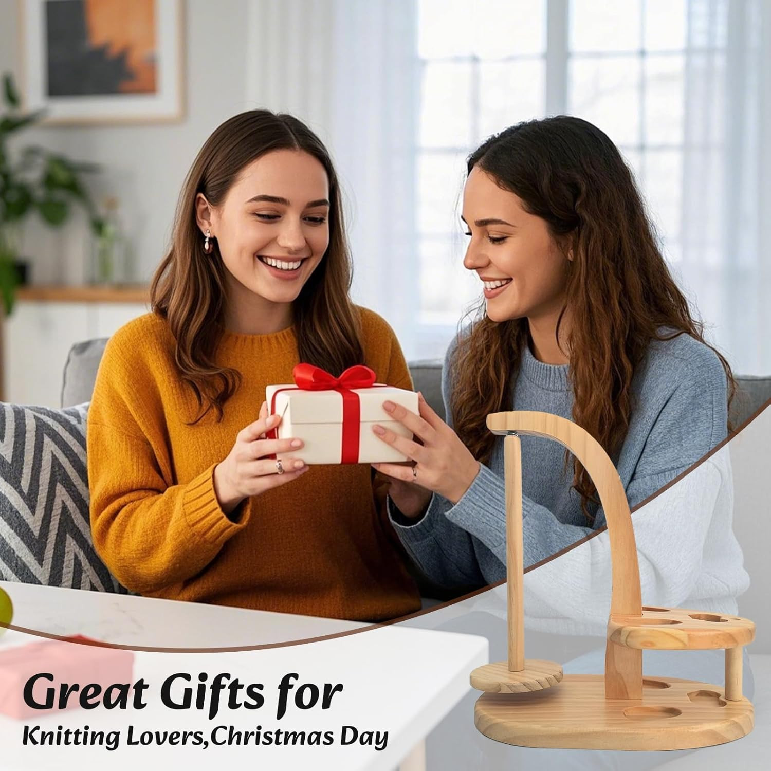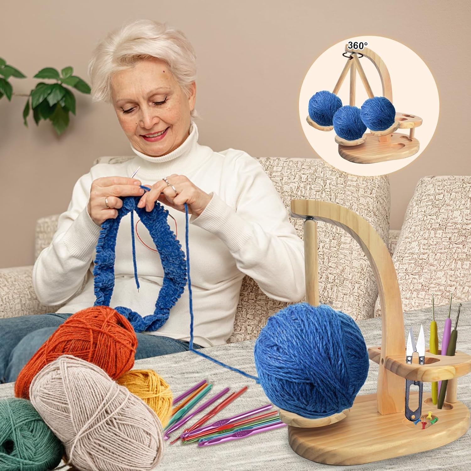 как выглядит Premium Wooden Yarn Holder with Magnetic Spinner for Crocheting and Knitting фото