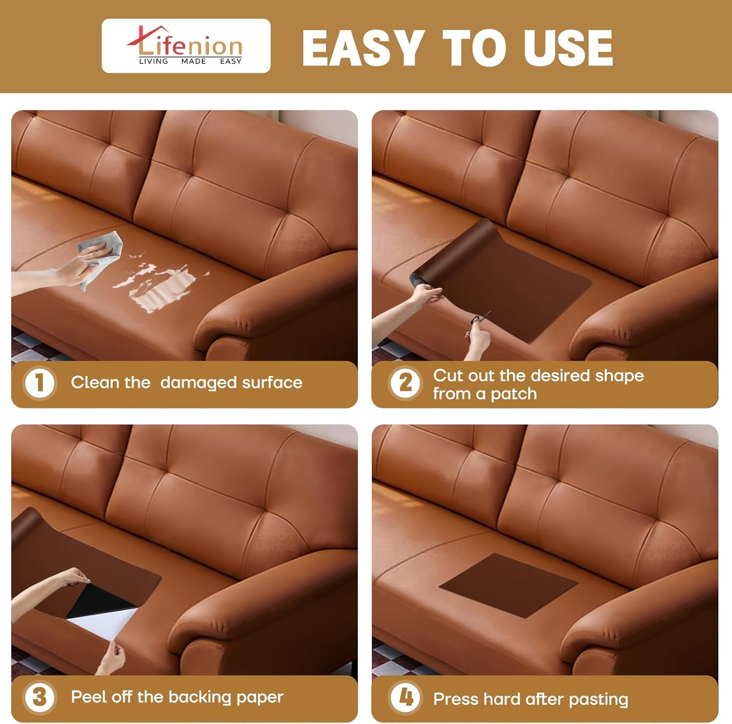 Self-Adhesive Leather Repair Patch, 17x79 Inch for Furniture and Car Seats