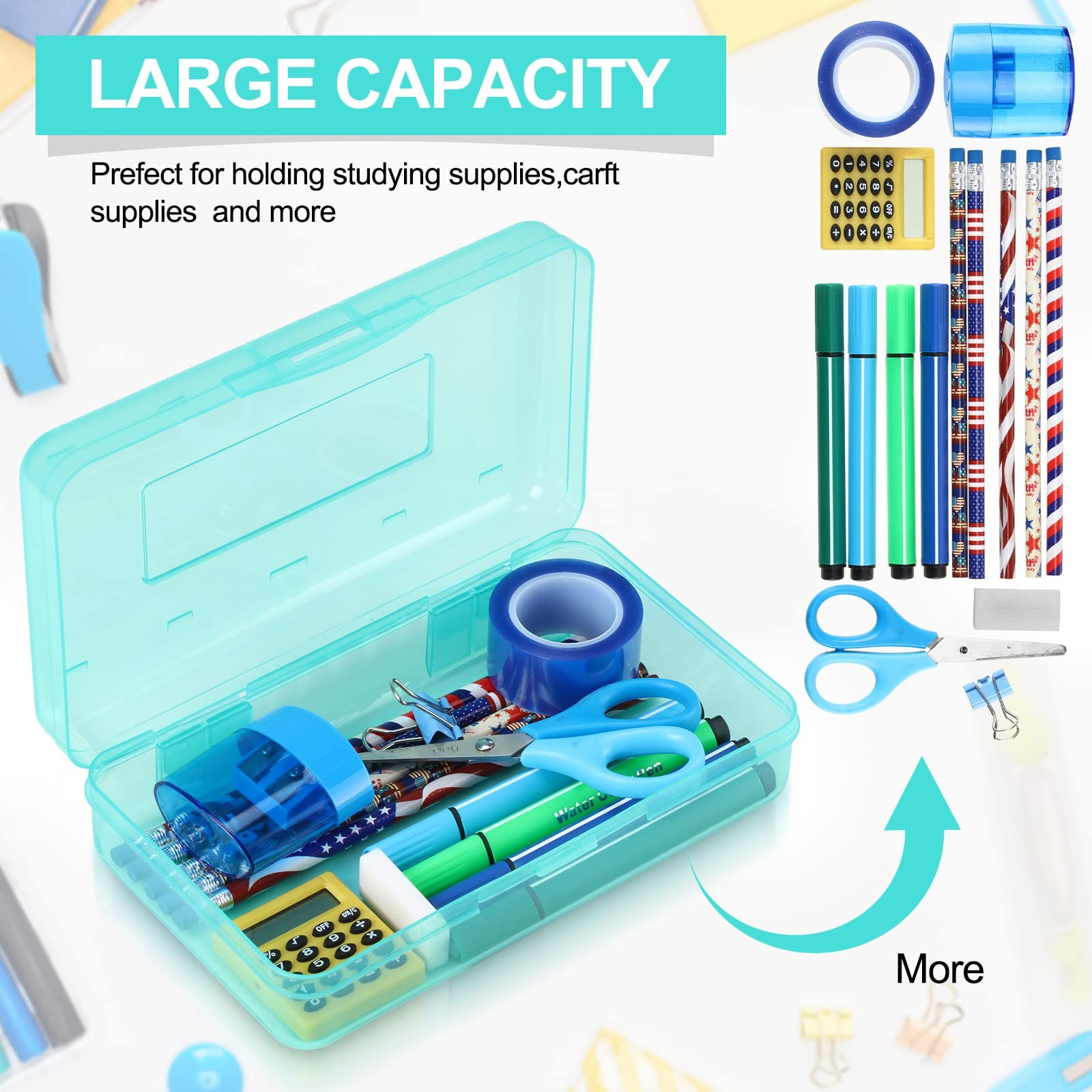 Leelosp 12 Pack Clear Plastic Pencil Boxes for School Supplies Storage with Lid