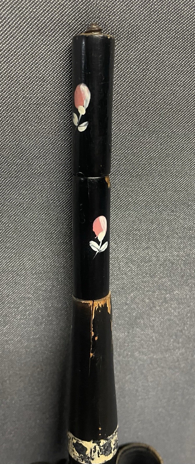 как выглядит Vintage Umbrella Parasol Black w/ Stitched Roses Wood Handle 34 x 28 фото