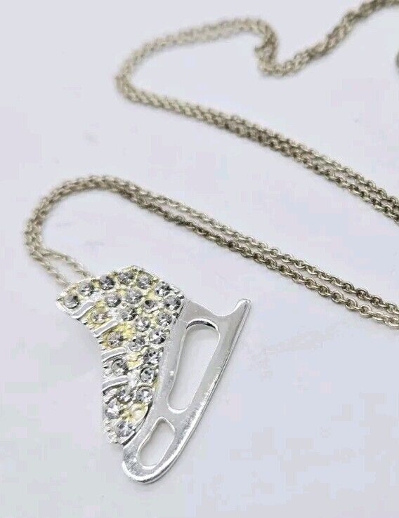 Ice Skate Pendant Christmas Necklace 18 in Silver tone PAVE