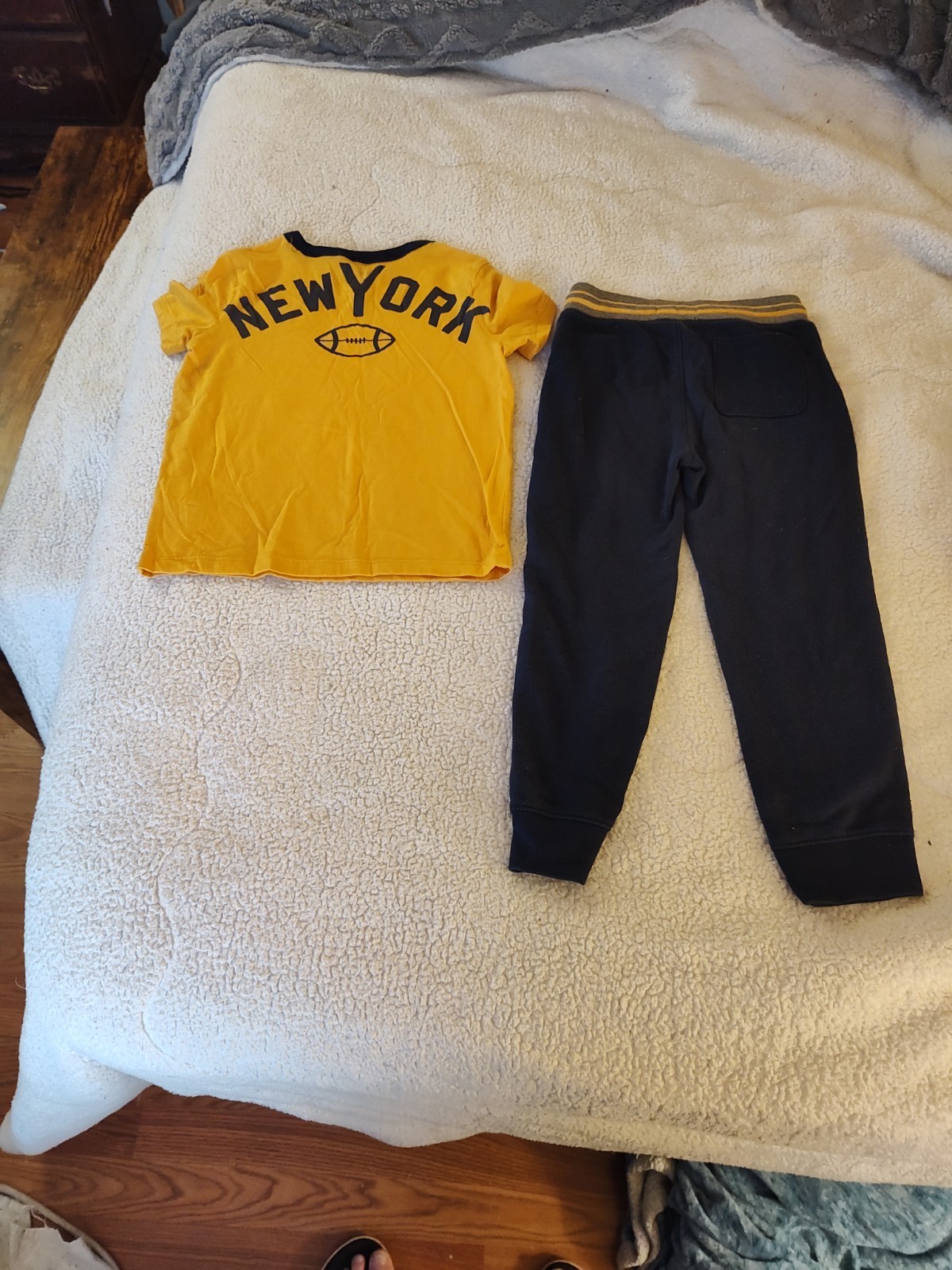 как выглядит Old Navy Boys 2-Piece Outfit Set Yellow Sports T-Shirt Navy Pants Size S 6-7 фото