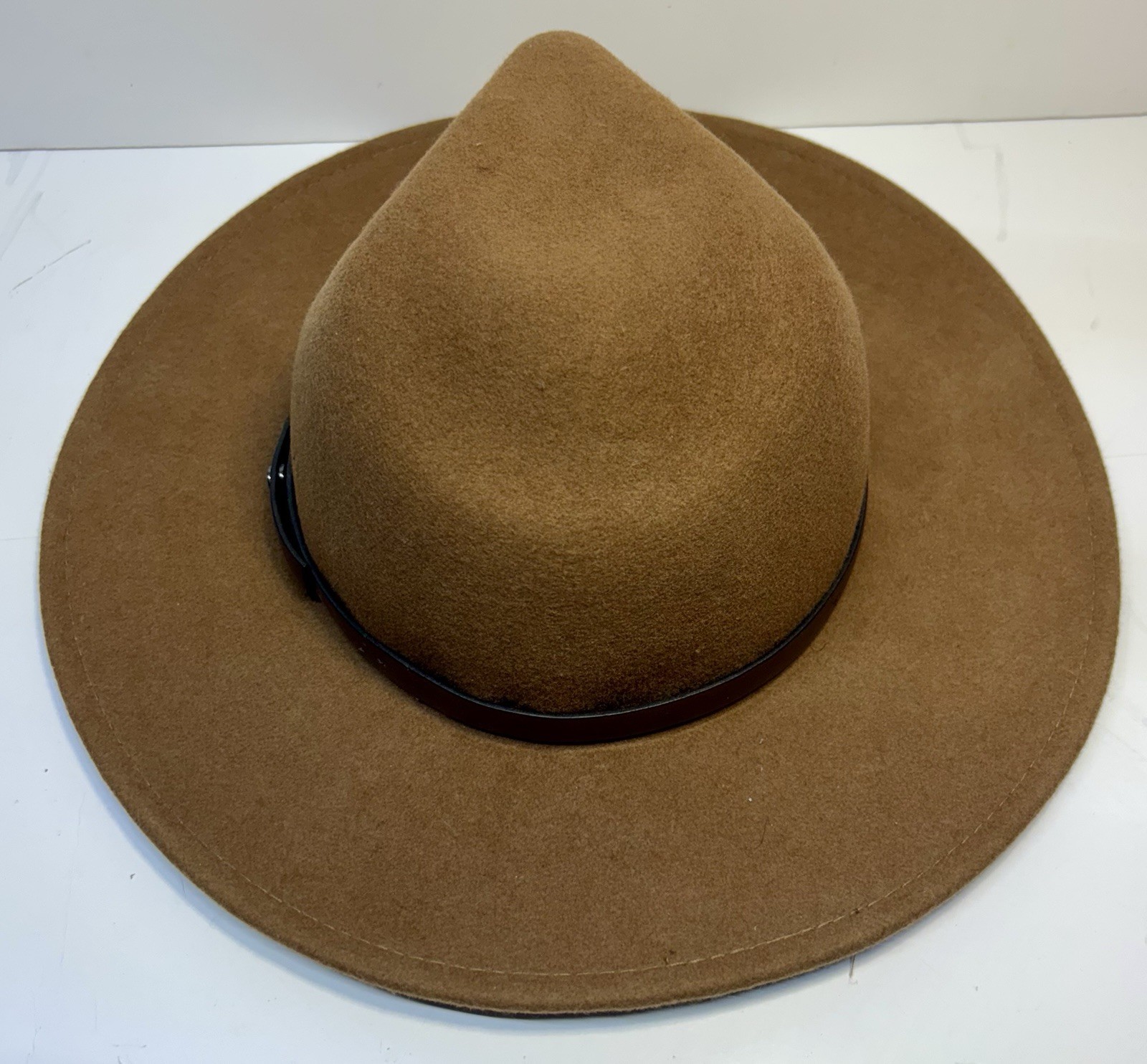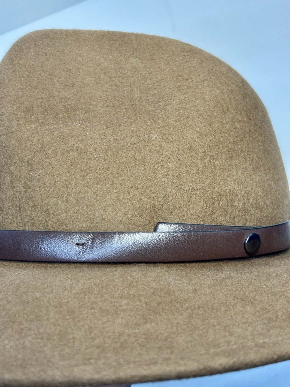Wide Brim Camel Wool Felt Fedora Rancher Hat Western Indie Boho 56cm