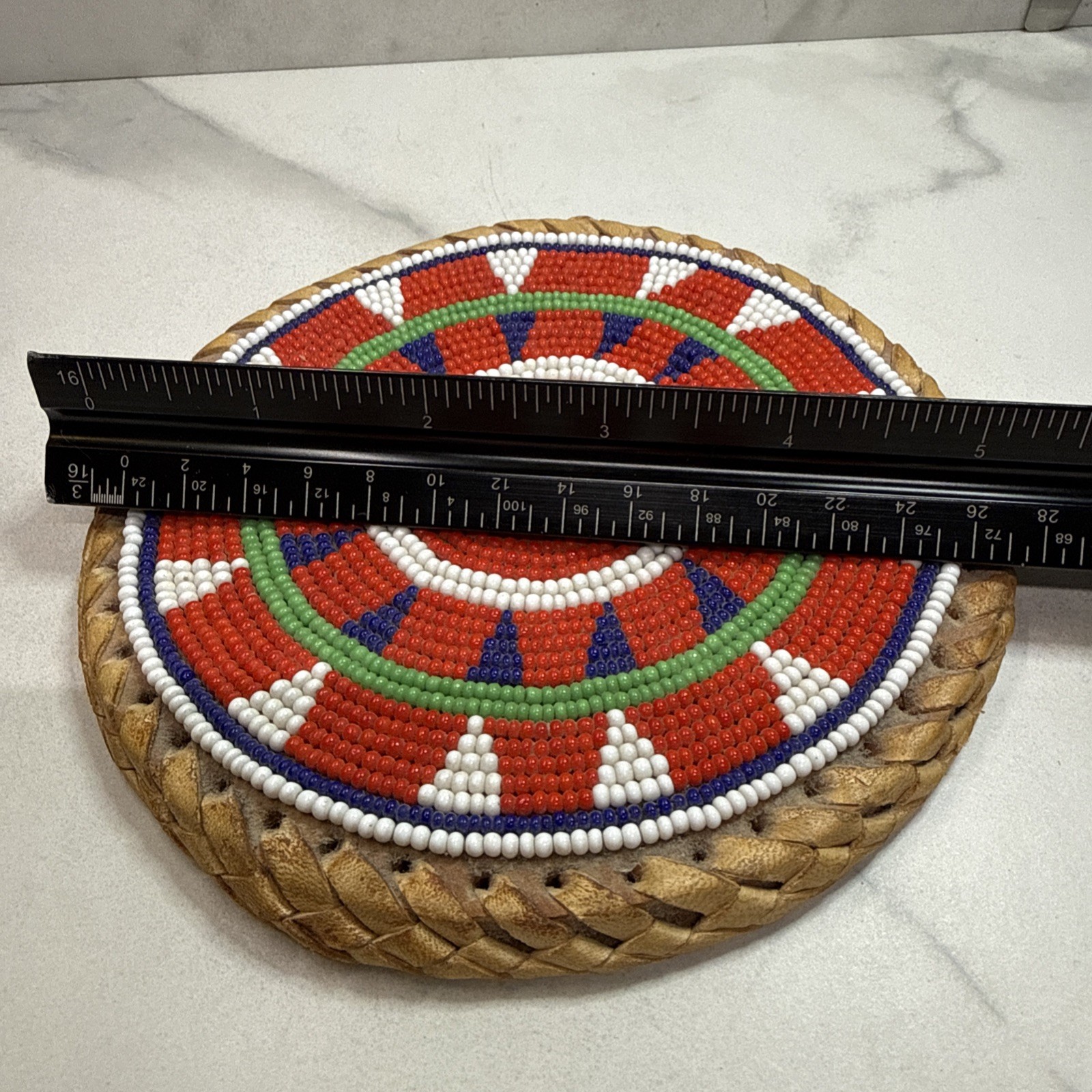Handmade Native American Beaded Medallion Trivet Braided Leather Backed 5.5