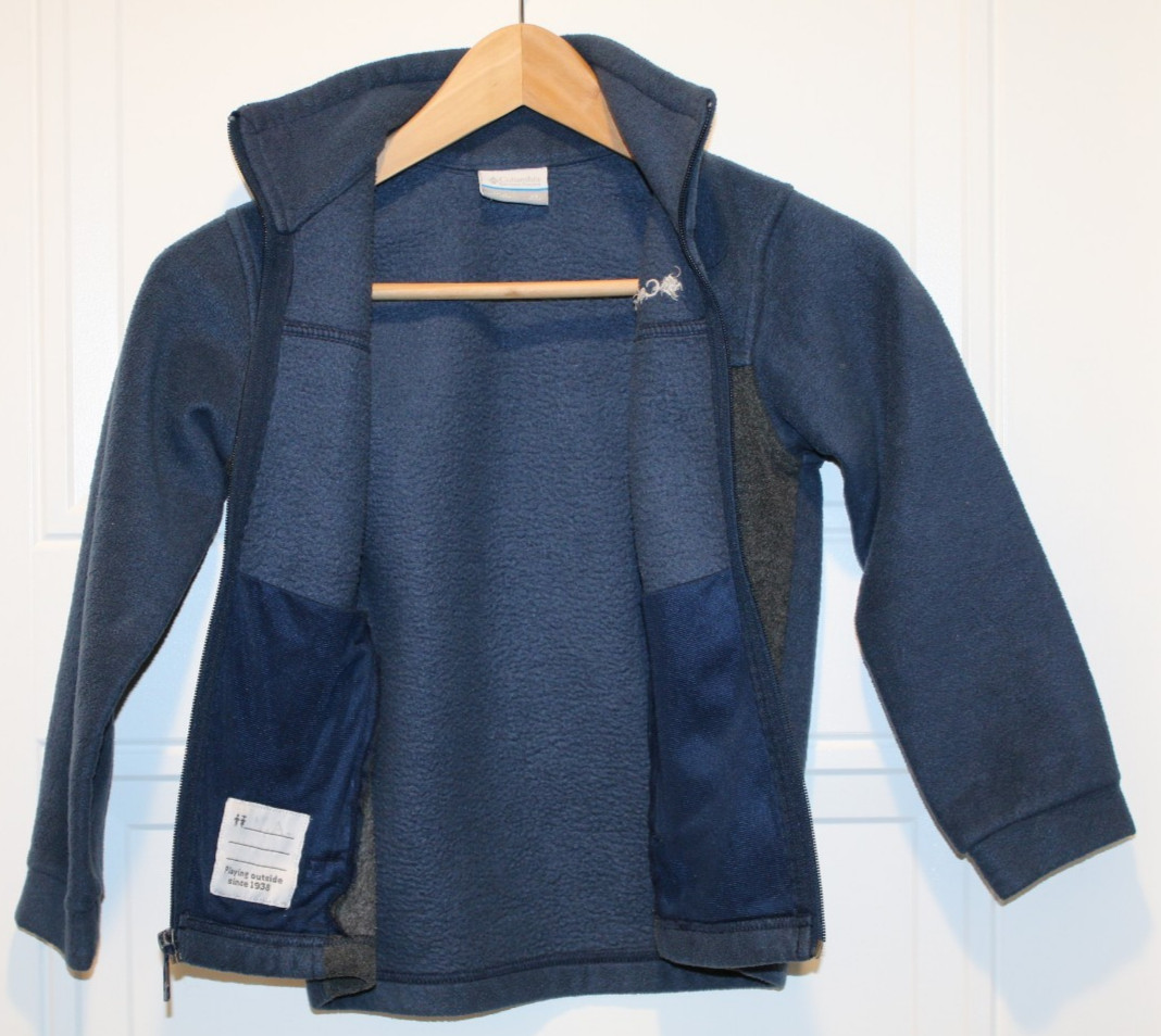 как выглядит Columbia kids polyester brushed fleece jacket, navy blue / gray, size XS 6-7 yrs фото