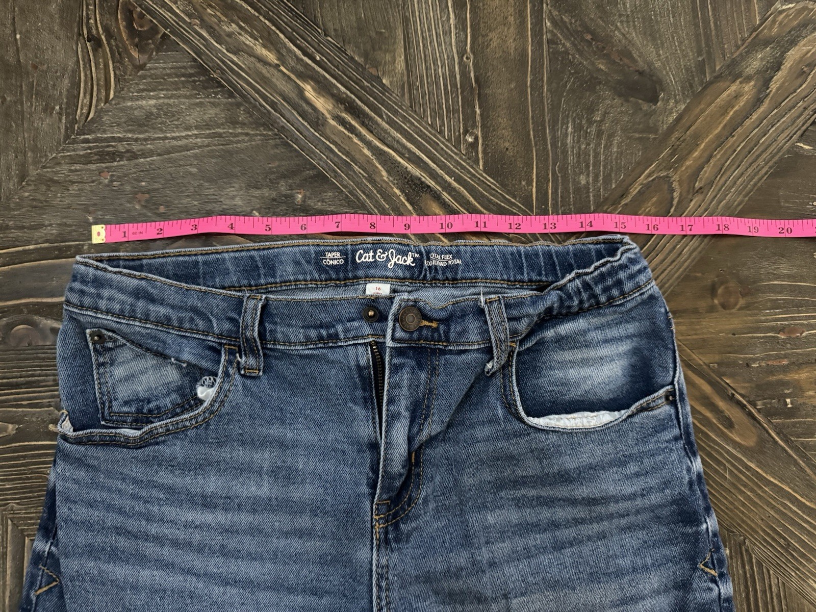 Cat Jack Boys Jeans Size 16 Husky Tapered Fit Blue Denim Adjustable Waist
