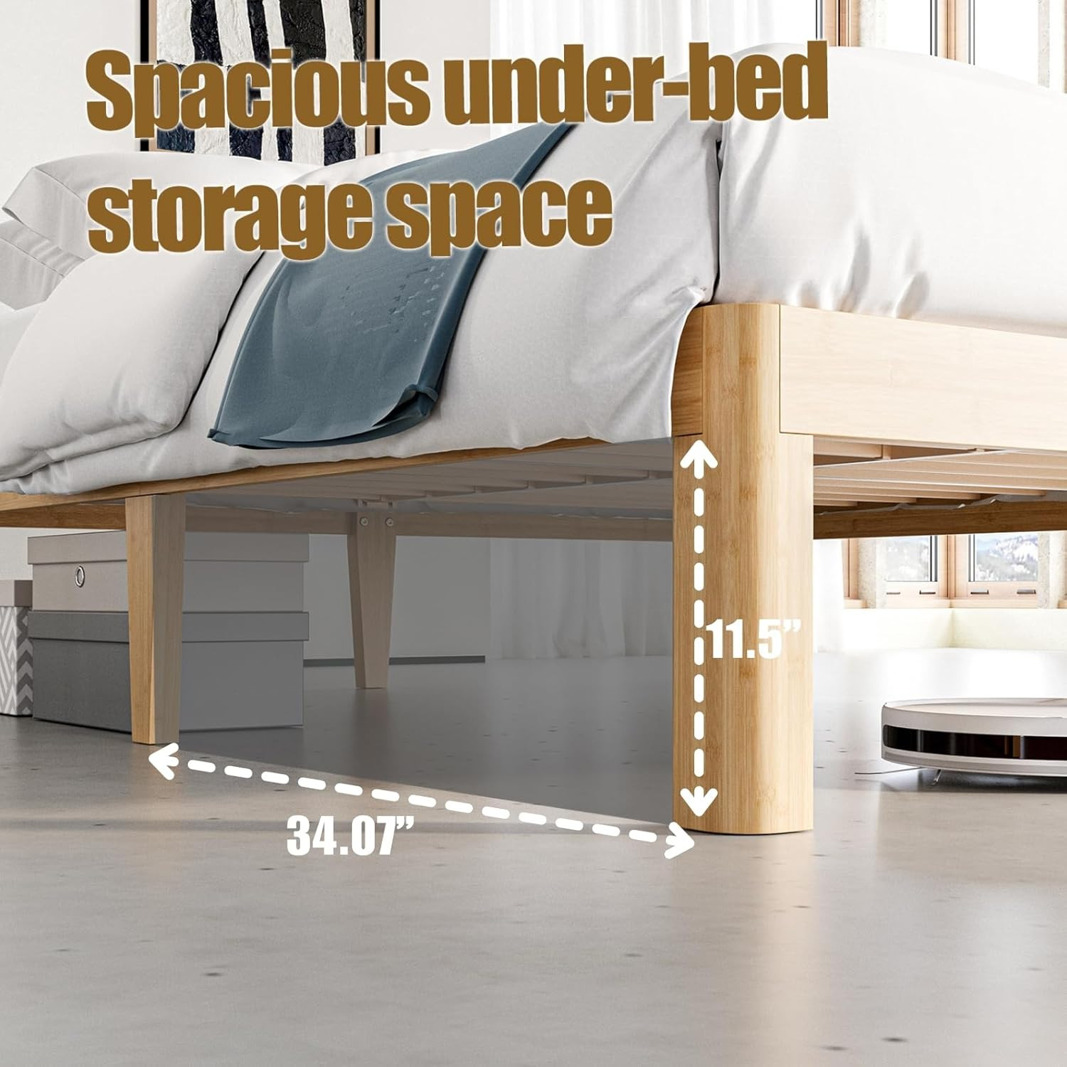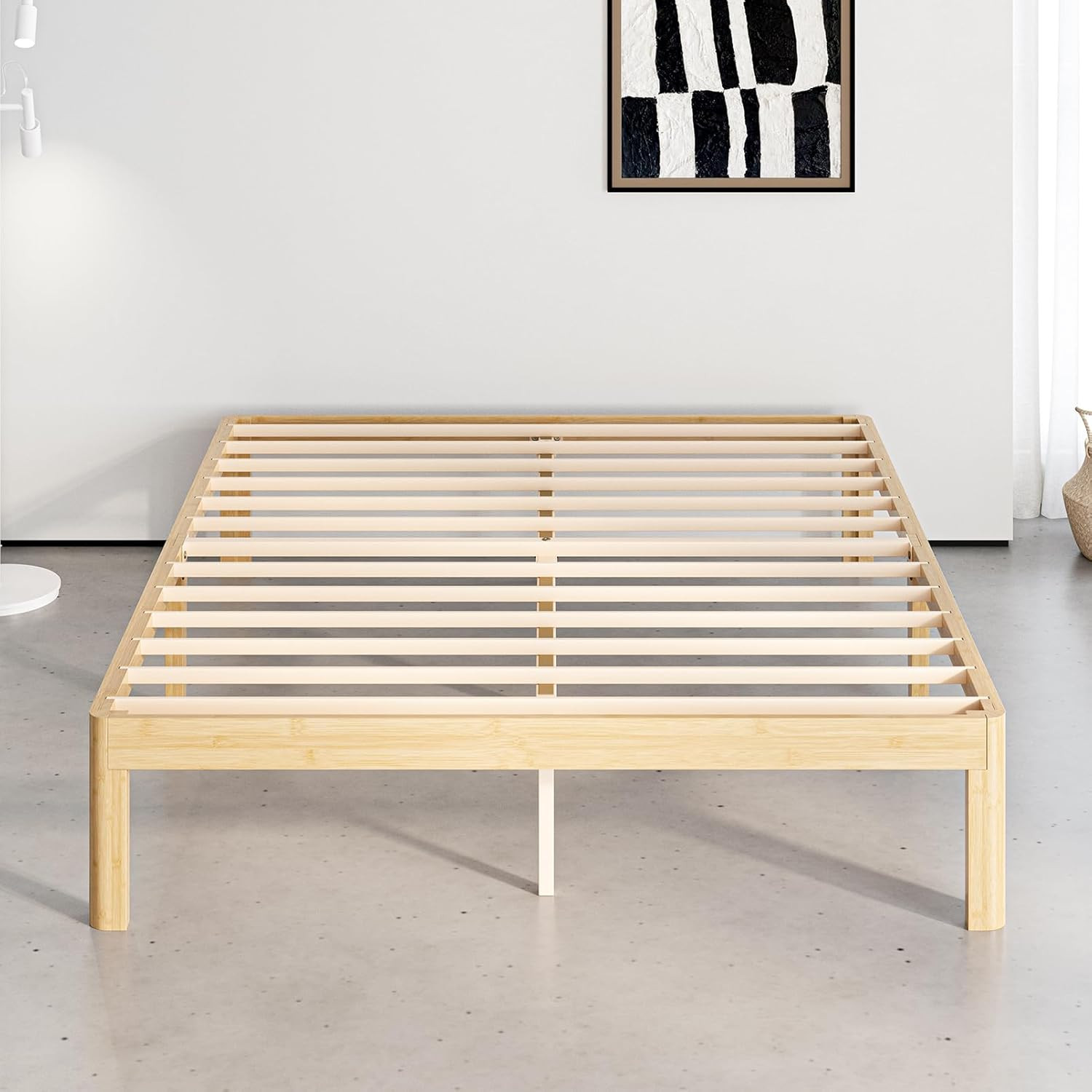 14 Bamboo Wood Full Size Bed Frame - No Box Spring, Easy Assembly, Noise Free