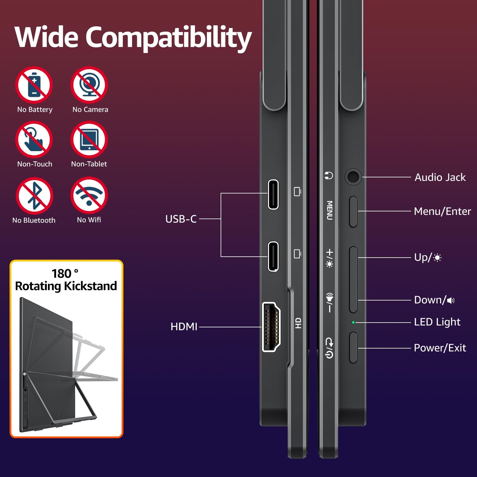 VisionOwl Large Portable Monitor 18.5-Inch 1080P FHD 100Hz Refresh Rate Laptop M