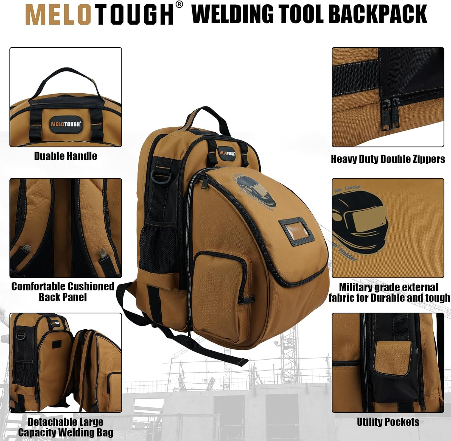 Heavy-Duty Welding Tool Backpack with Helmet Bag Large Capacity Pouch