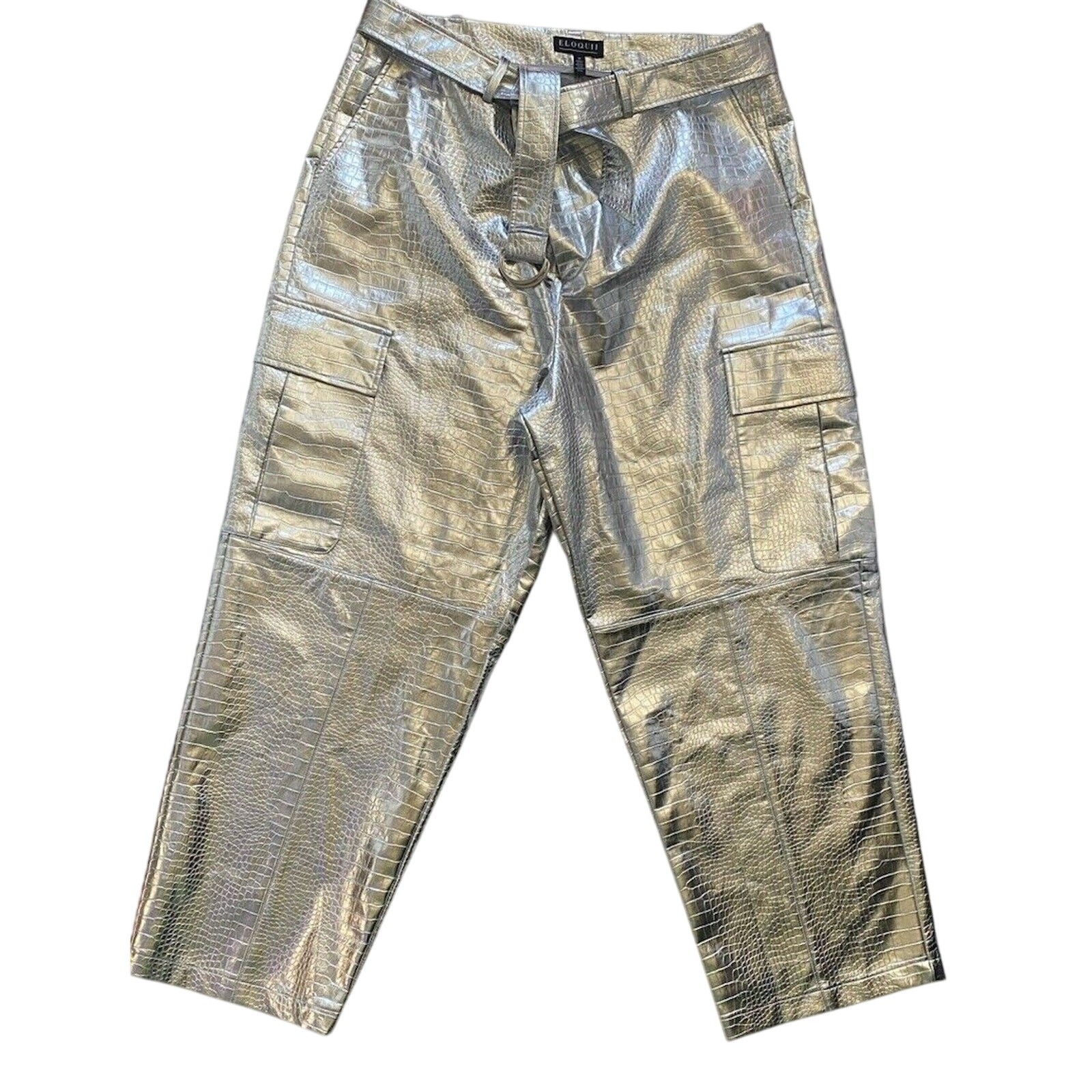 Eloquii Pants Womens Sz18 NEW Vegan Leather Cargo Silver Party Going Out Slacks