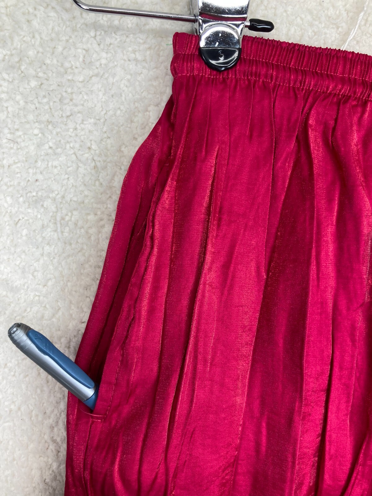 VTG Womens Pants S Red Velour Stretch Pant Pleated Elastic Waist Drawstring