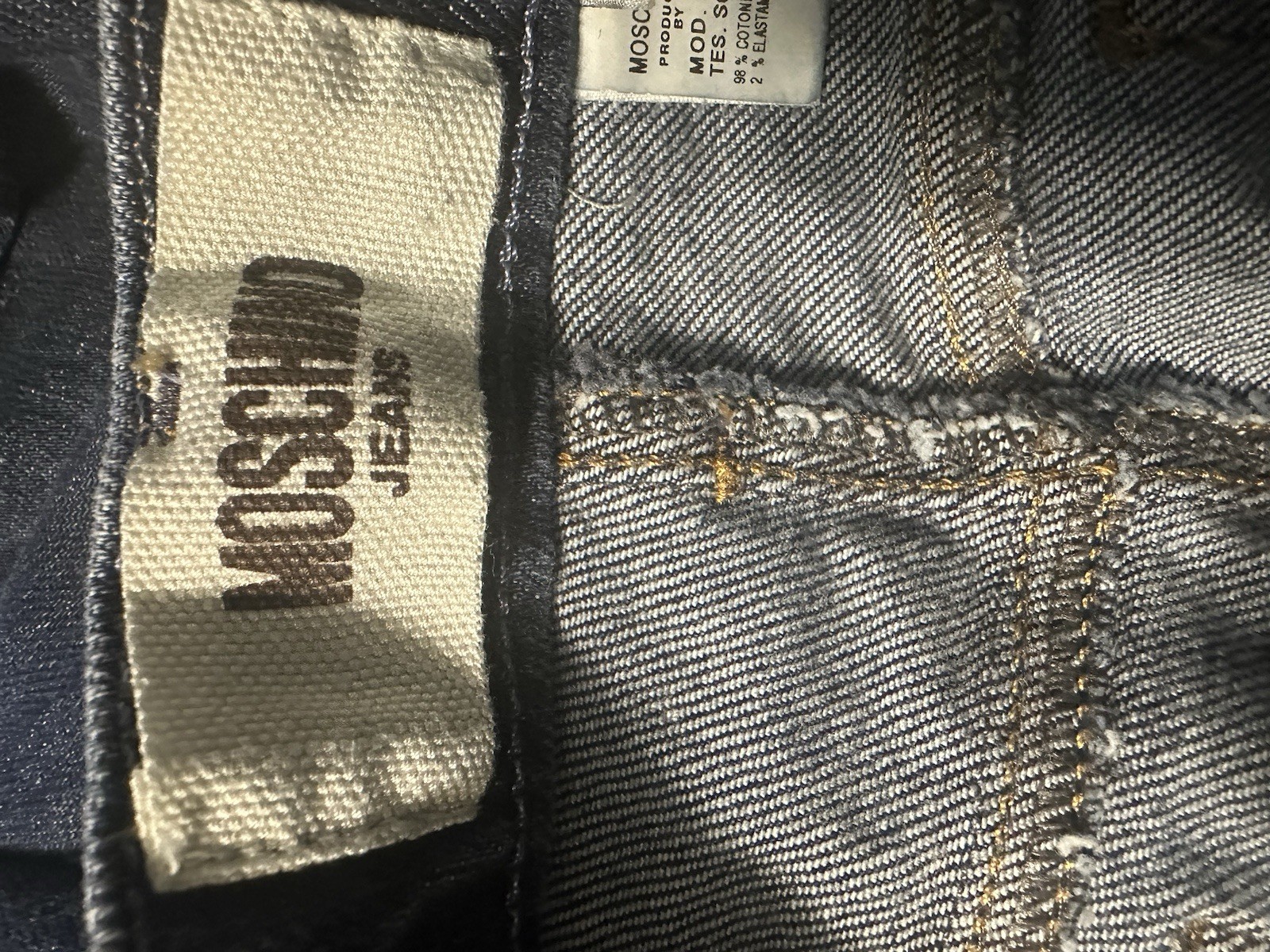 как выглядит Vtg Moschino Jeans Donna 32 Crop Frayed Peace Sign Italy Boho Y2K Granola Girl фото