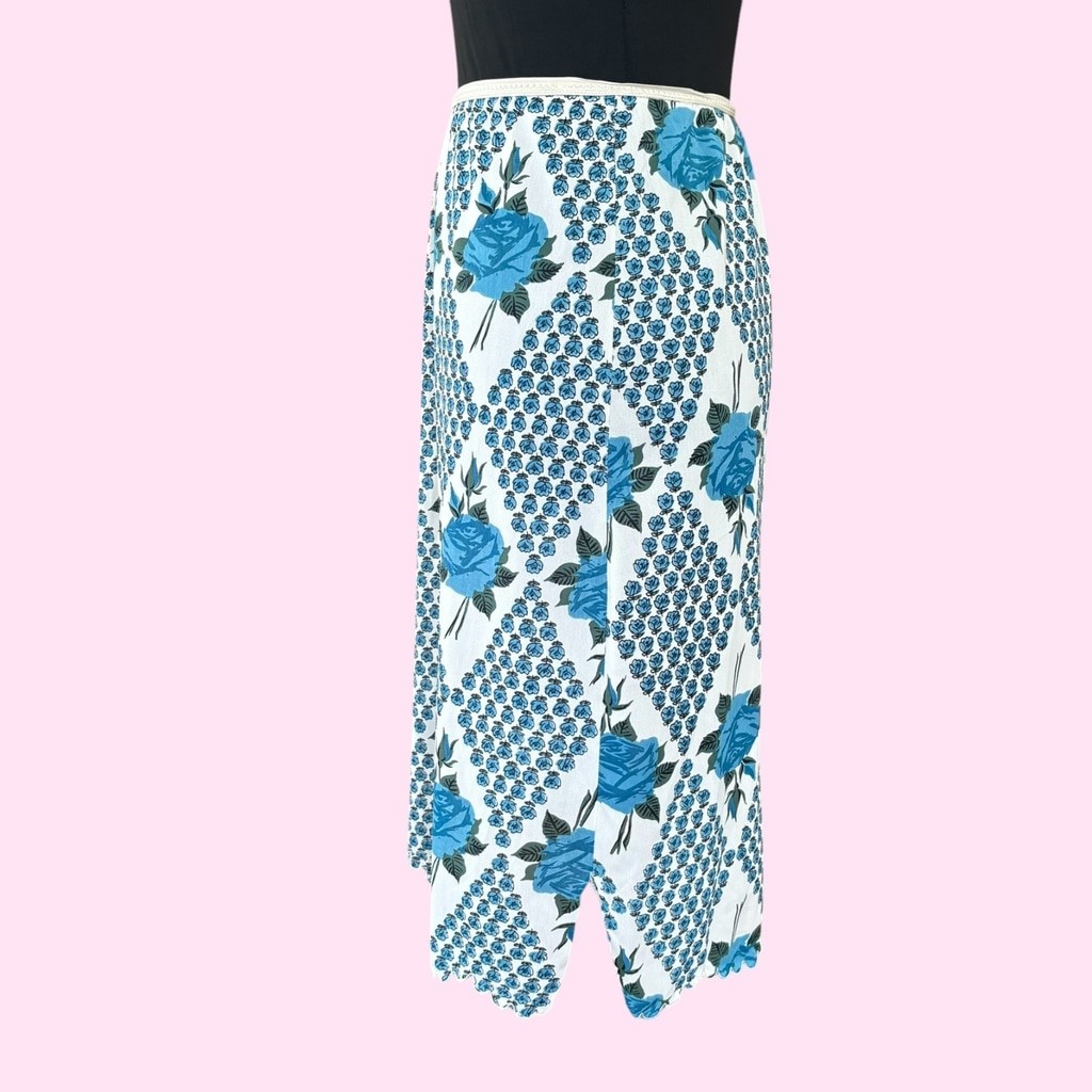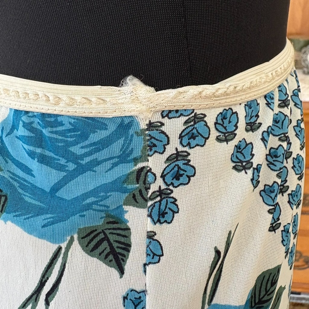 Vintage 40s 50s Blue Rose Slip Skirt Mid Century Half Slip