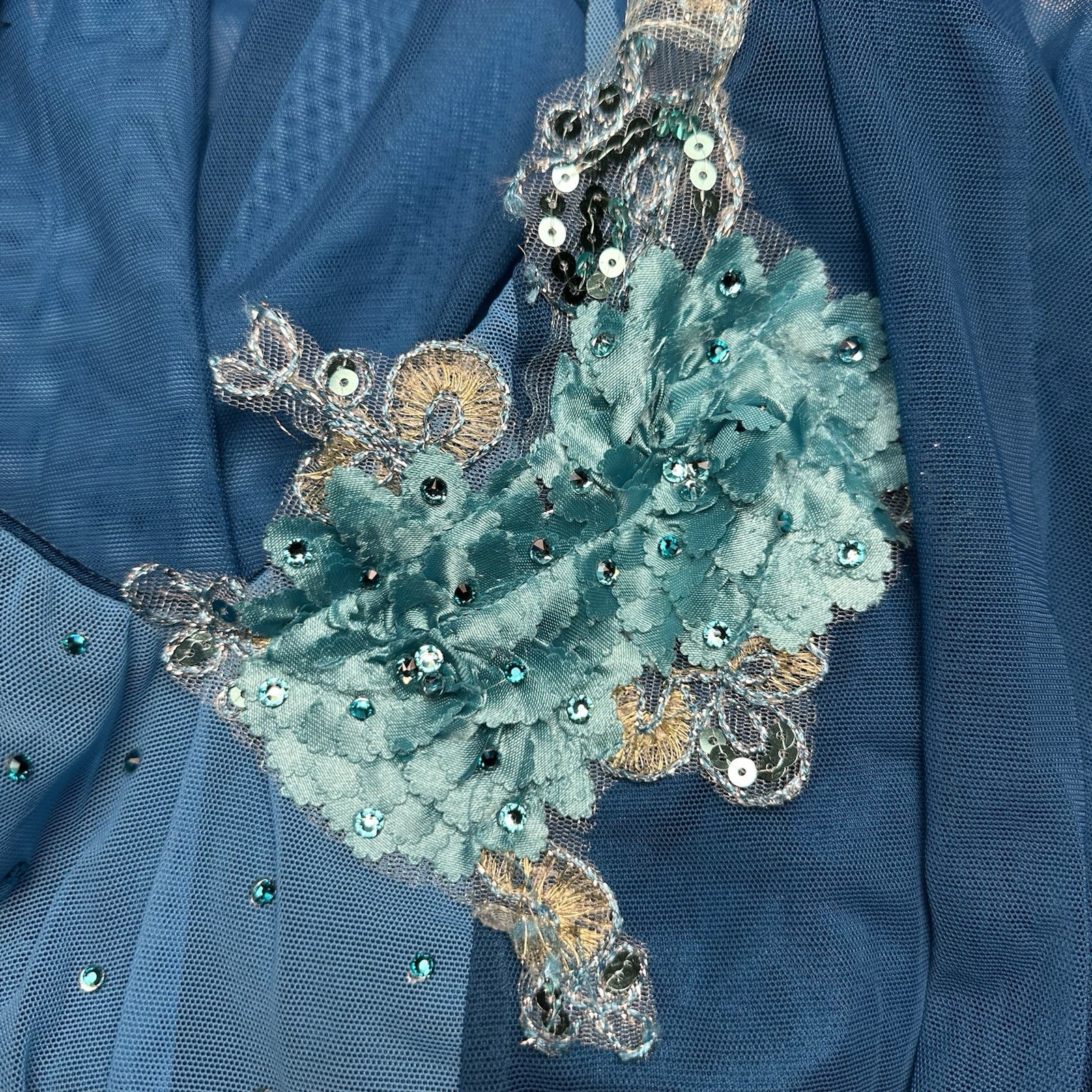 как выглядит Kelle Company Teal Mesh Rhinestone Embellished Lyrical Dress Dance Costume MA фото