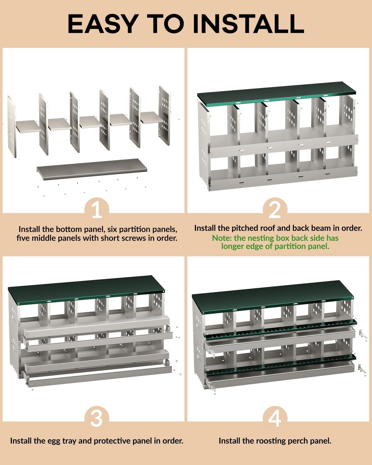 Nesting Boxes for Chicken 10 Compartment Nesting Box 2-Tier Hen Nest Box Yard US