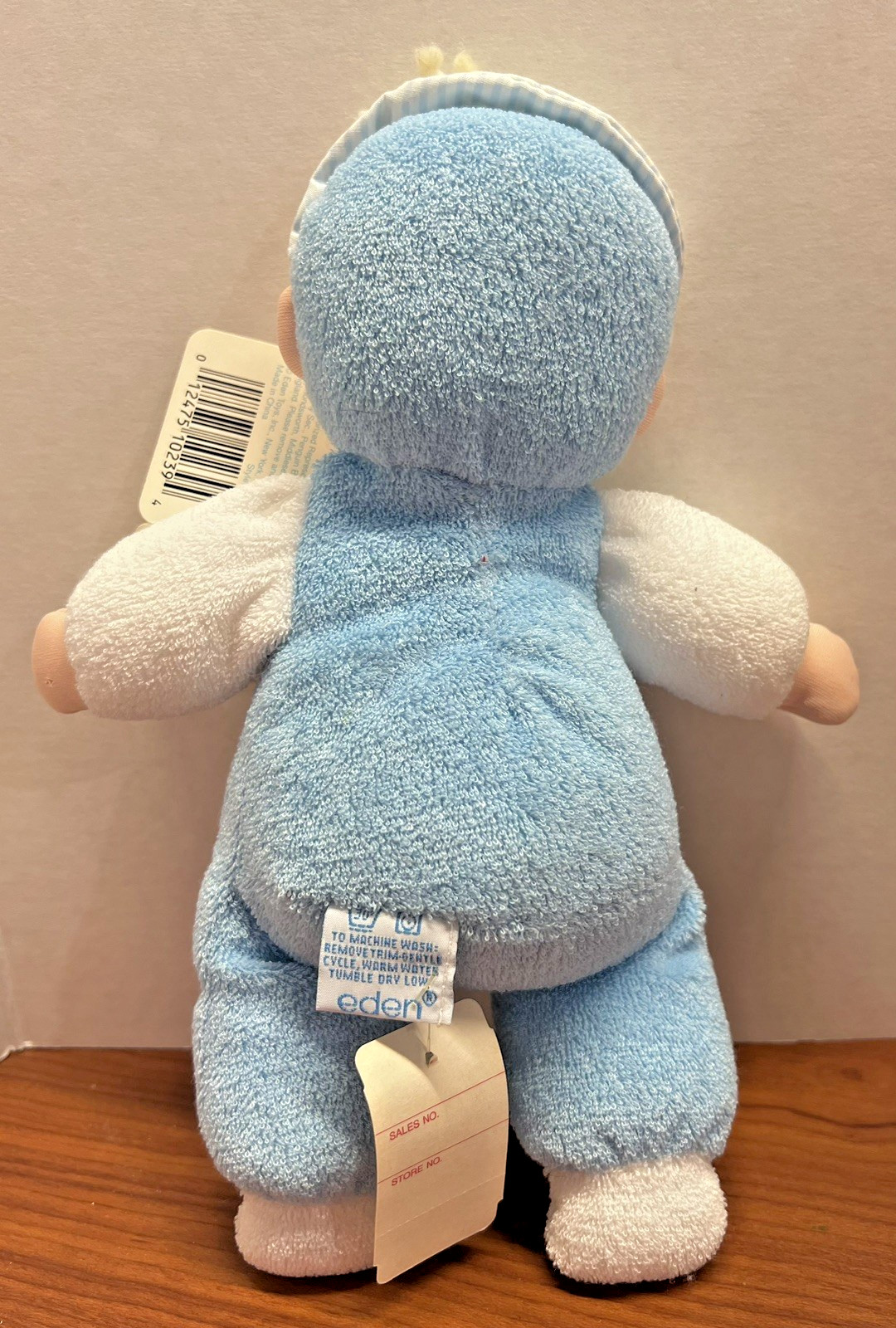 Eden Boy Baby Doll Plush Blue Terry Cloth Blonde Hair Blue Eyes Vintage NOS