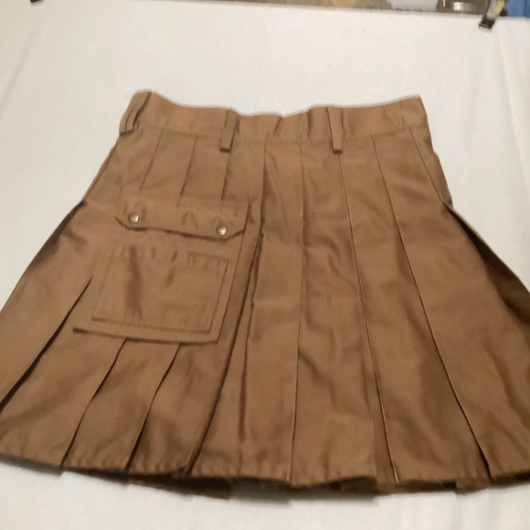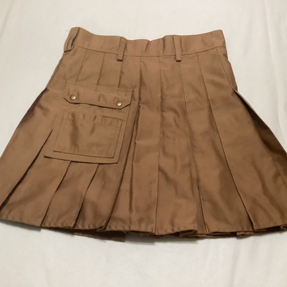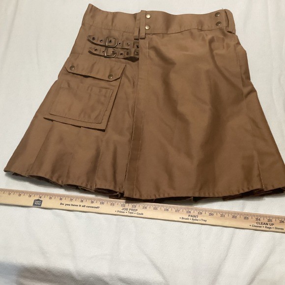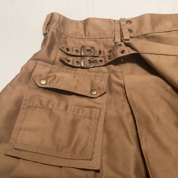 Brown Pleated Utility Kilt Skirt Buckle Straps Cargo Pockets34