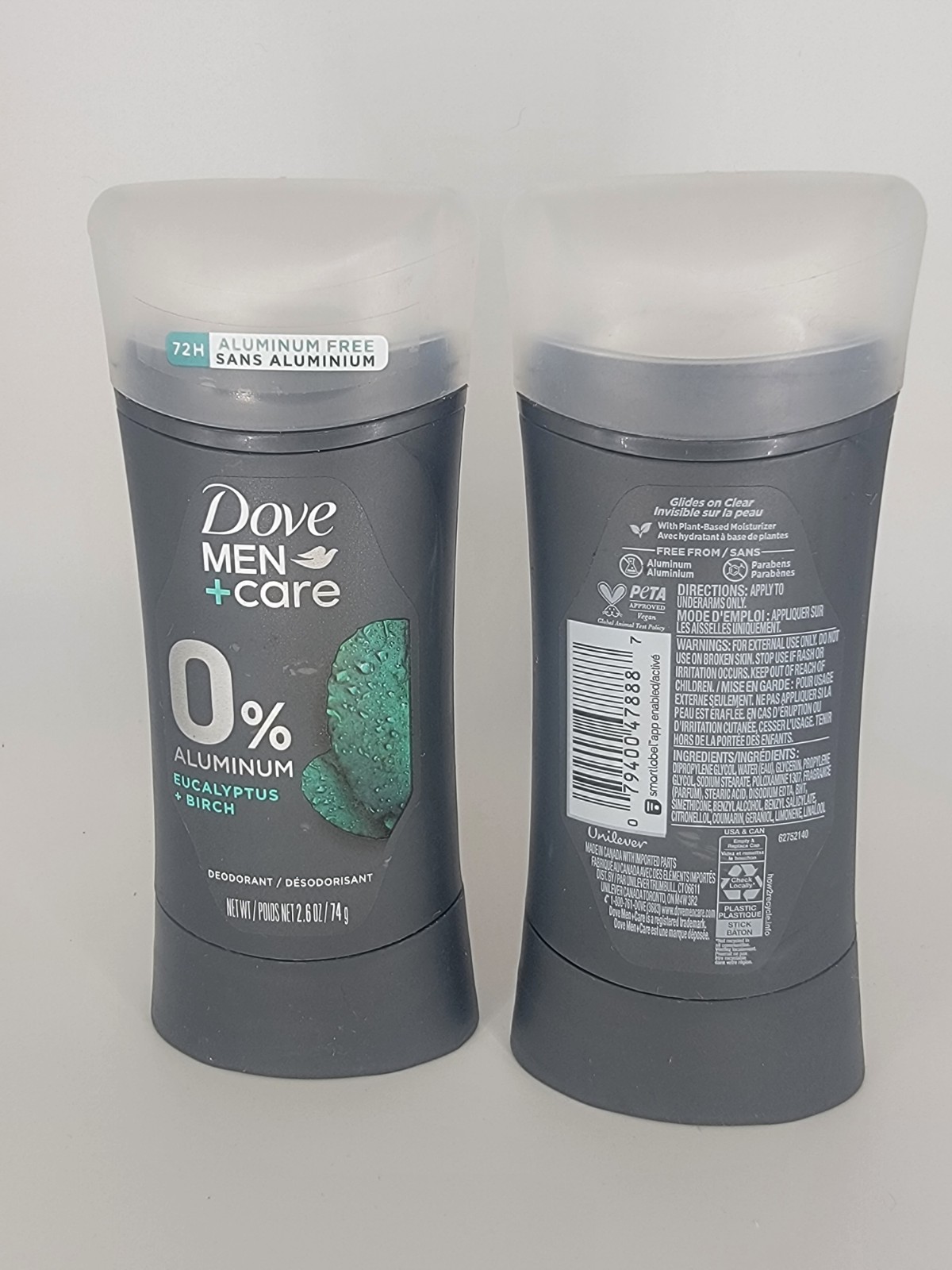 2 Pack Dove Men Care Aluminum Free Eucalyptus Birch Deodorant Stick 2.6 oz