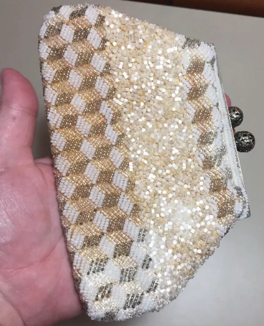 как выглядит Vintage Mid Century Two Tone Heavily Beaded Clutch Purse фото