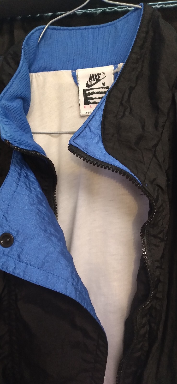 как выглядит Vintage 90s Nike Swoosh Warmup Suit Unisex  Black/Blue Track Jog Retro EUC фото