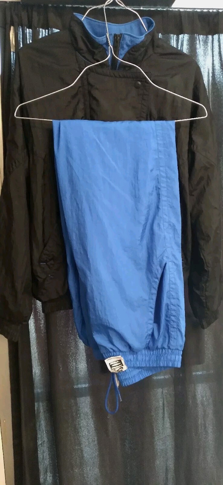 Vintage 90s Nike Swoosh Warmup Suit Unisex Black/Blue Track Jog Retro EUC
