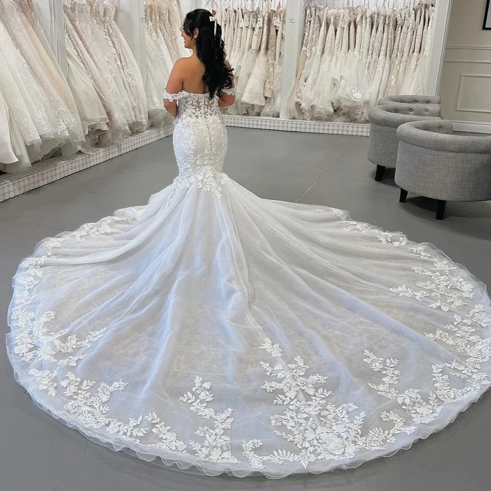 как выглядит Stunning Mermaid Wedding Dresses Sweetheart Off the Shoulder Floral Print Draped фото